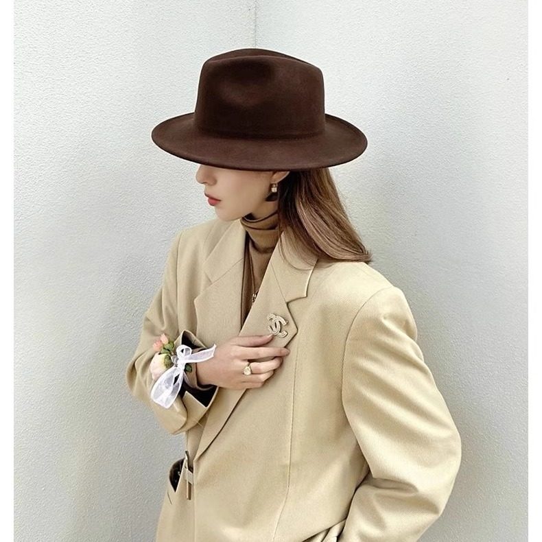 📚 温暖驼色法式羊毛礼帽逛街休闲男女同款秋冬宽沿平沿休闲爵士帽子