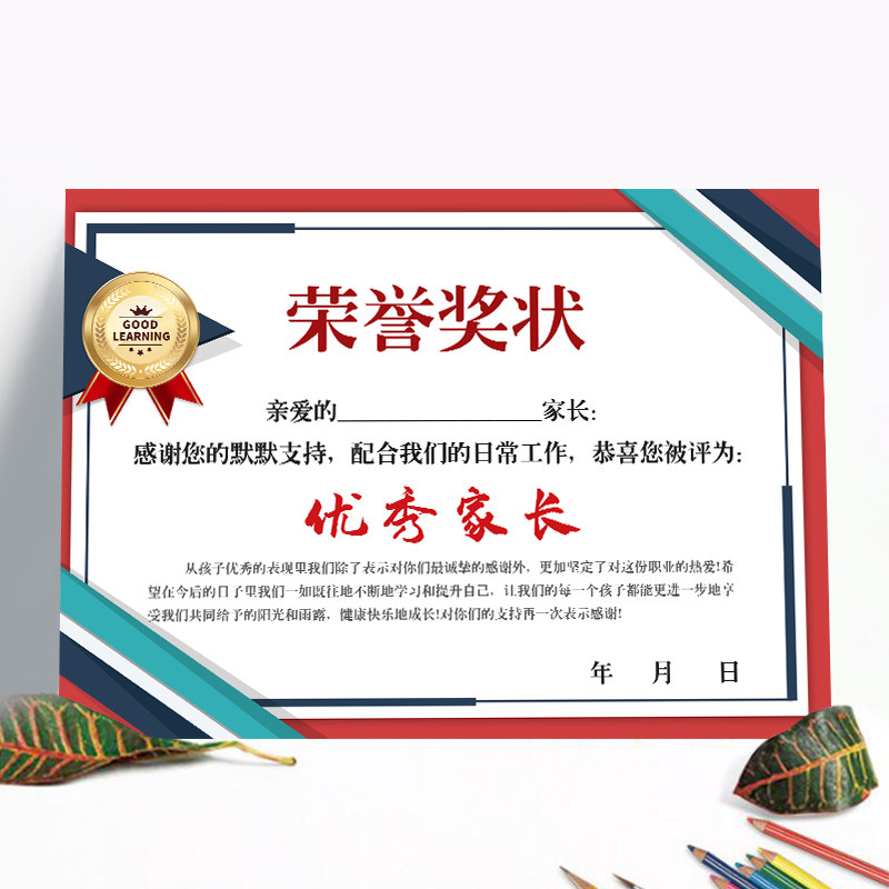 📚 A4奖状纸最美妈妈 最美家长 模范家长 优秀家长 加厚创意个性卡通