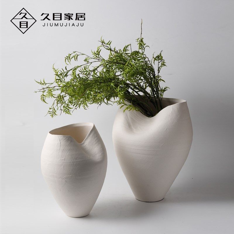 📚 现代手工a素白磨砂创意素雅陶瓷花器摆件样板房售楼处客厅花瓶装