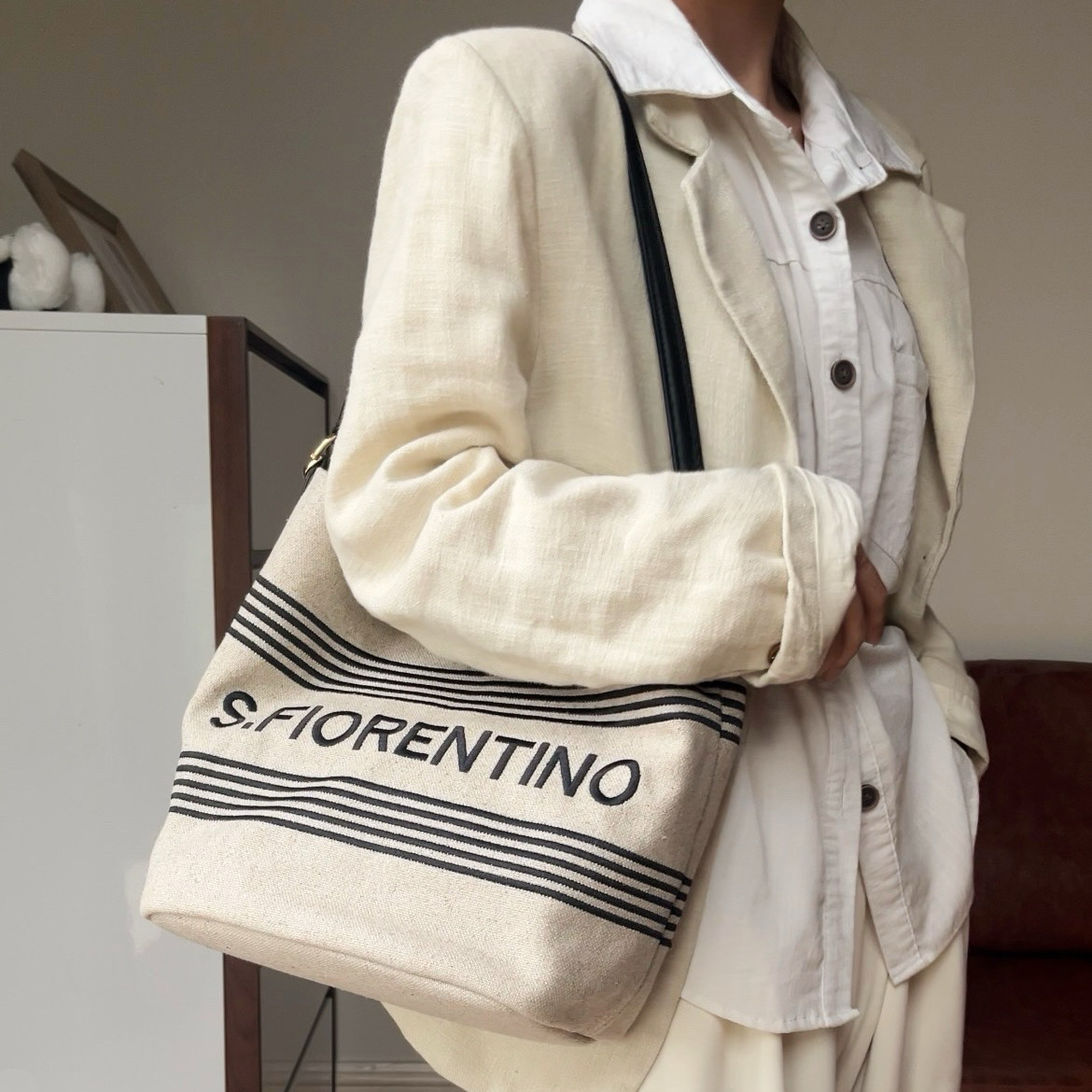 📚 圣.梵伦蒂诺S81-H864-1WB女士时尚百搭单肩包大容量高级感水桶包