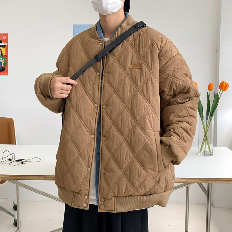 小伙伴们,我今天要跟大家分享一款超暖心的小物件——迈特优菱形格棒球服棉衣男冬季新款潮牌加绒加厚保暖棉服外套。真的是一见钟情!💓