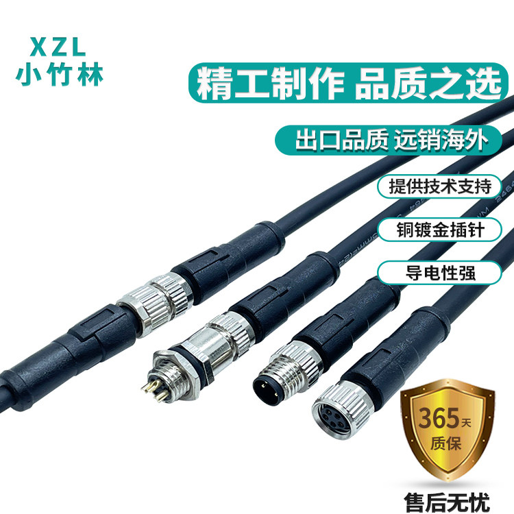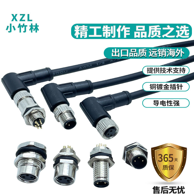 📚 M8连接器防水航空插头3P4P5P直头弯头公母插头注塑传感器连接线