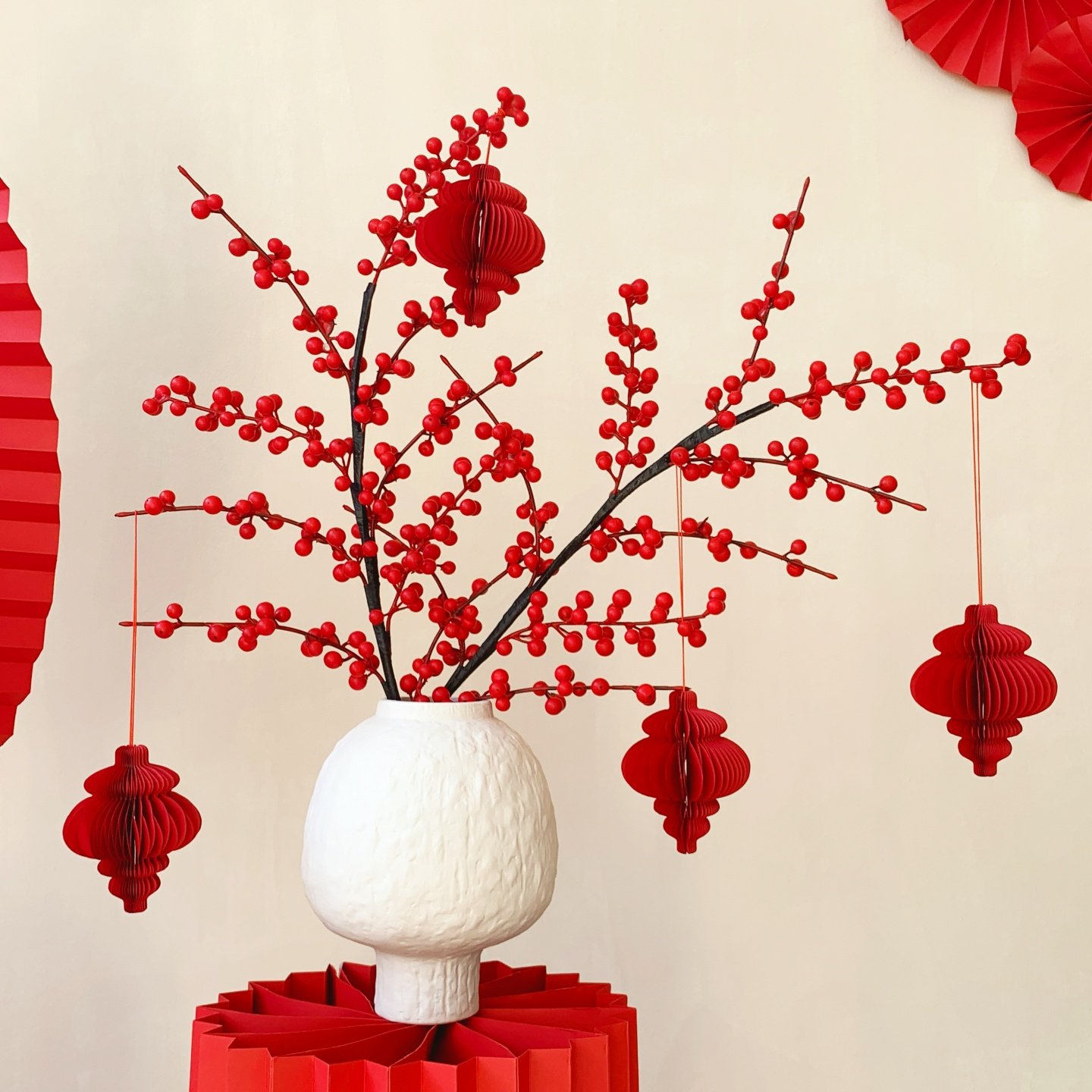 📚 新年装饰花摆件发财果冬青红果仿真花摆设假花客厅乔迁花艺年宵花