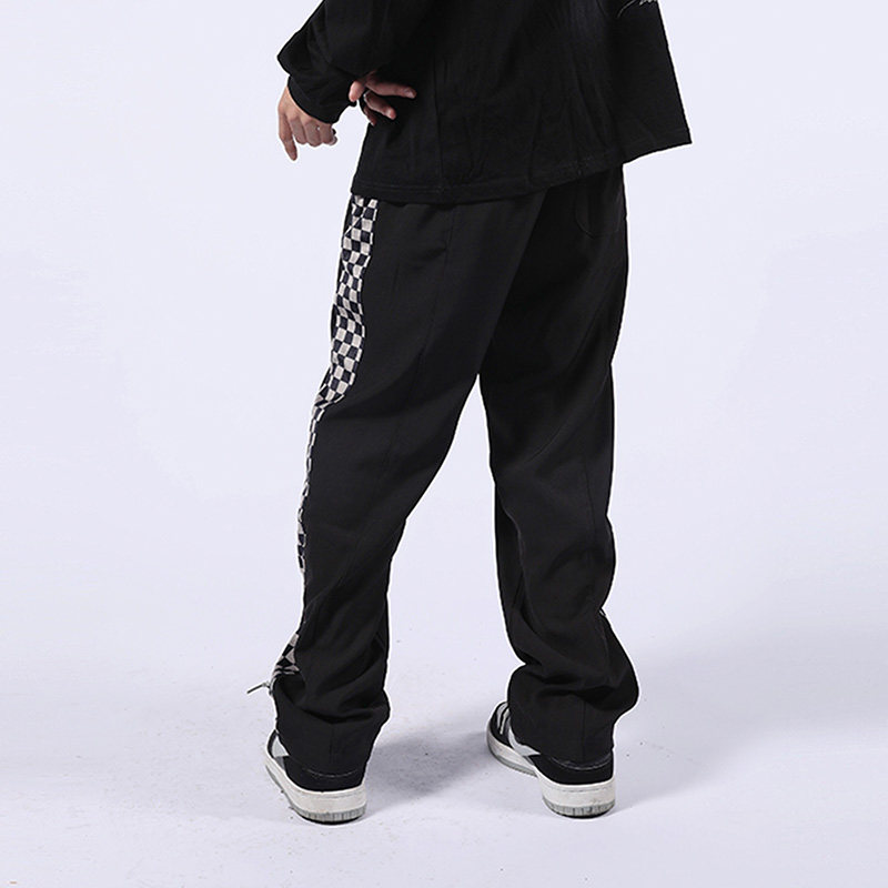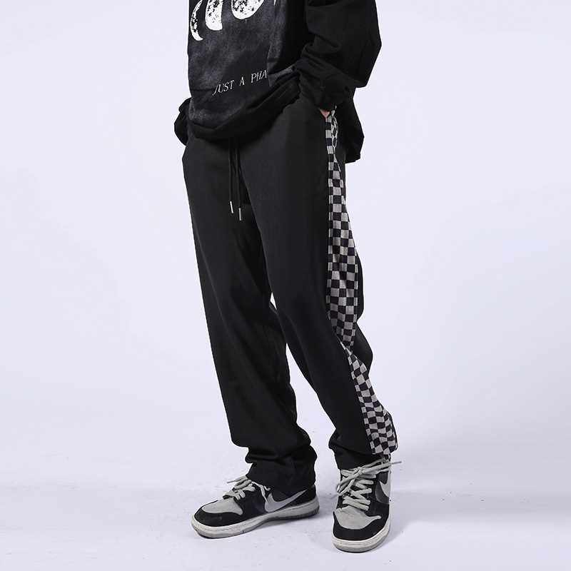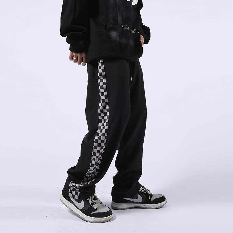 📚 Checkerboard Plaid Pants Men's Side Stripes Loose Straig
