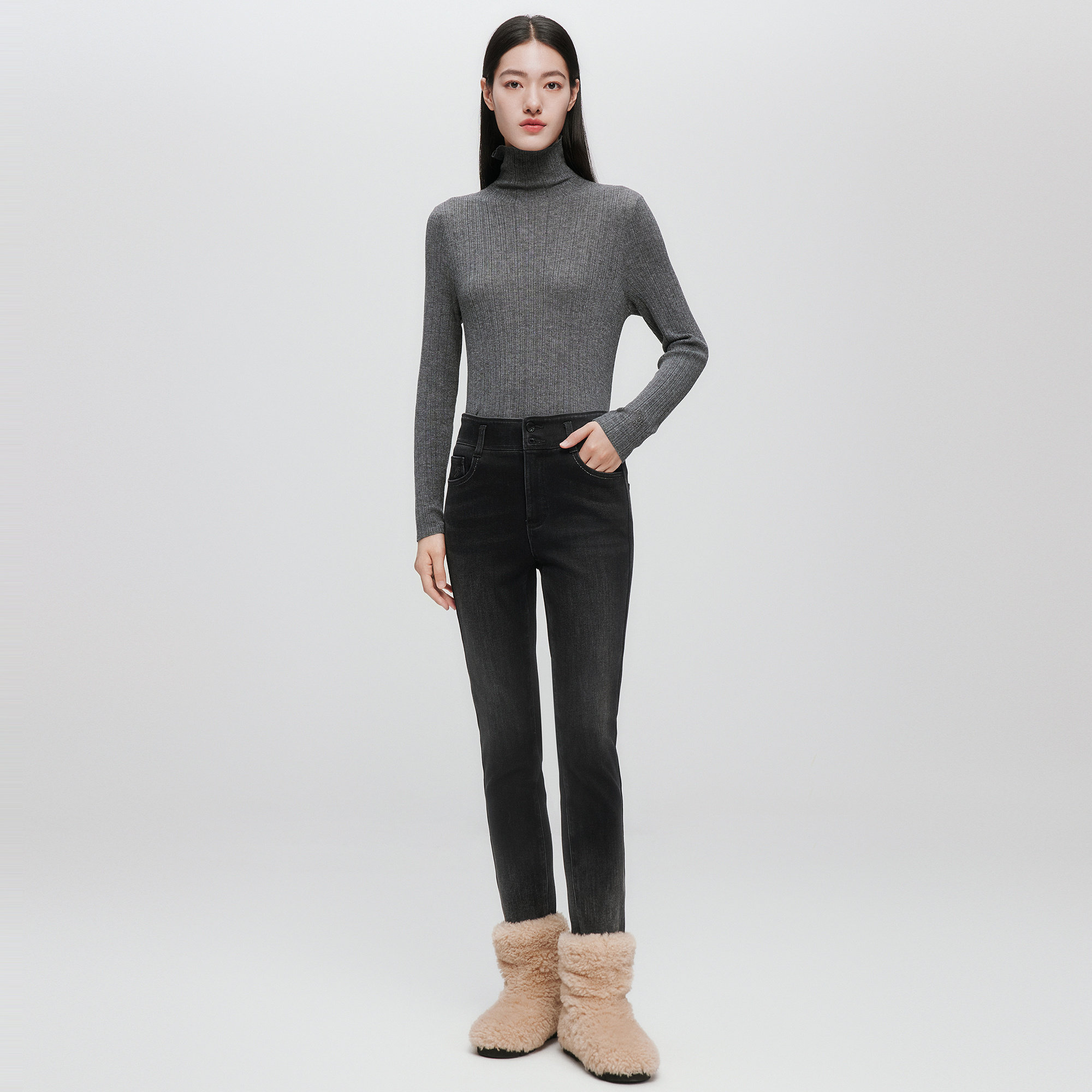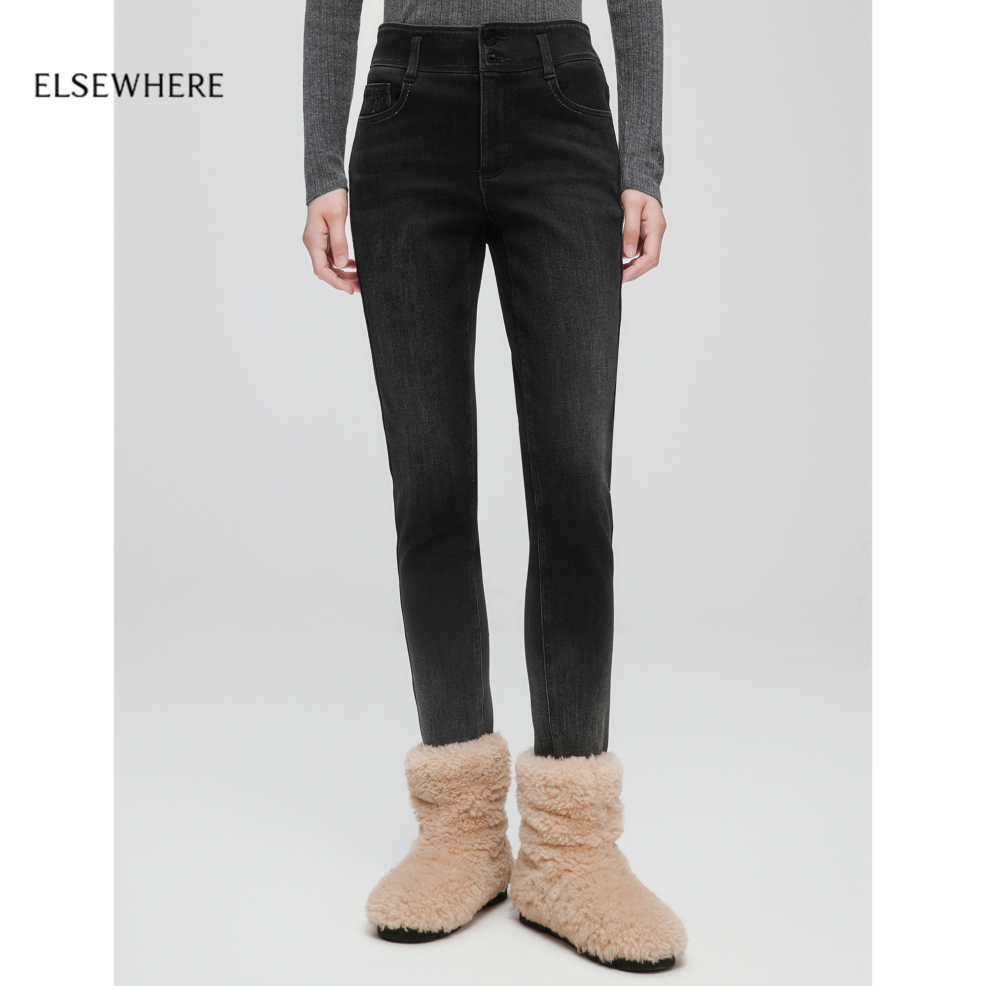 📚 【新疆长绒棉】ELSEWHERE珂思商场同款保暖小脚牛仔裤女25冬新款