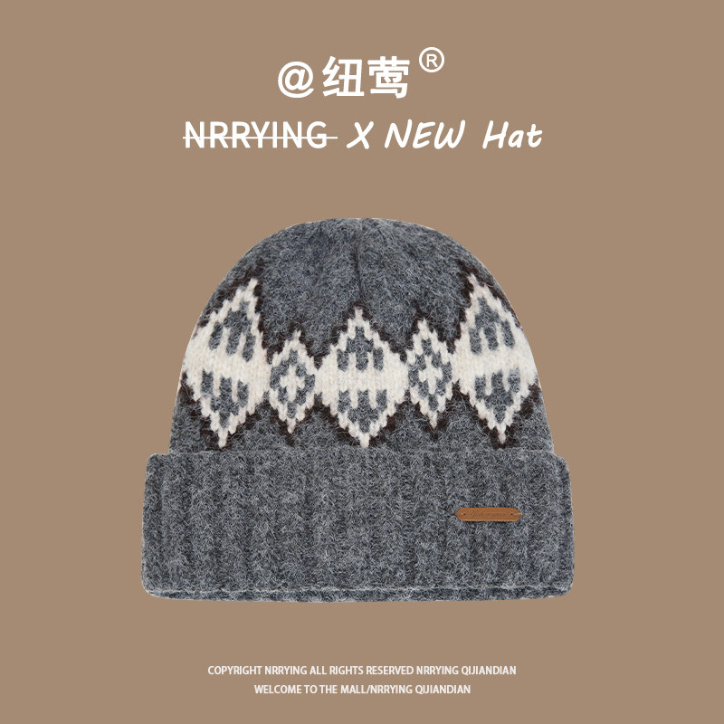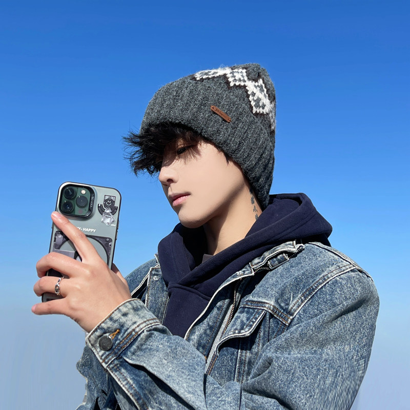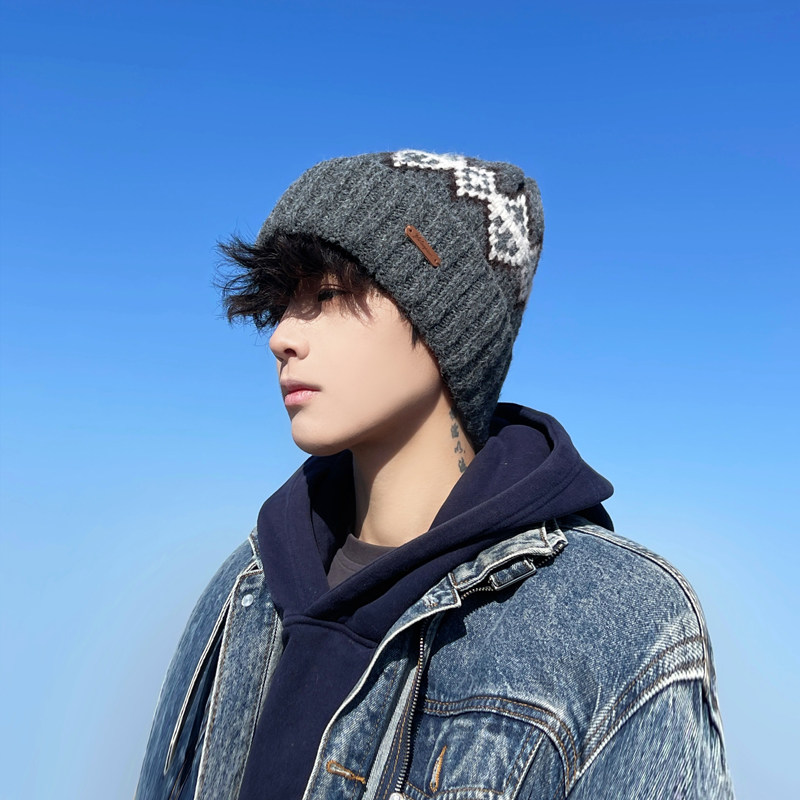 📚 羊毛混纺针织帽子男款费尔岛新款冬季保暖护耳毛线帽包头帽男冷帽