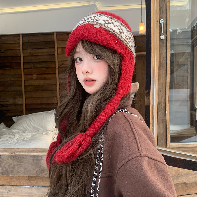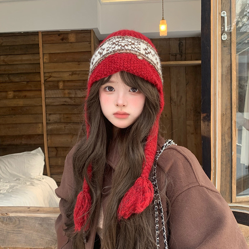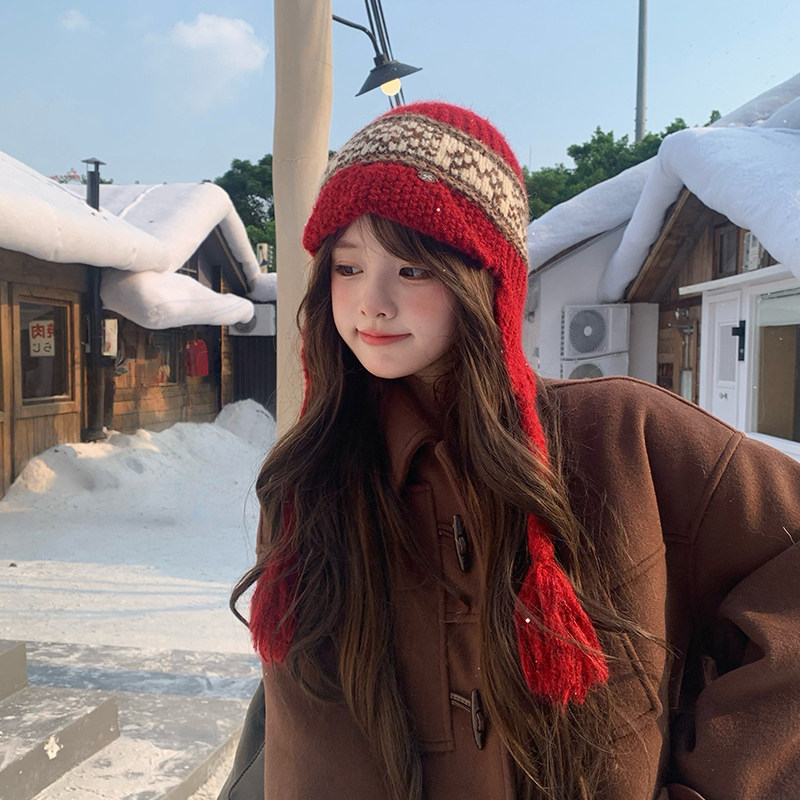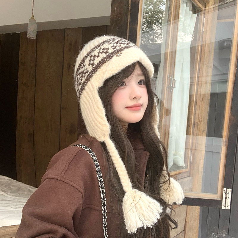 📚 费尔岛毛线帽子女款秋冬季2025新款显脸小护耳保暖防寒加厚雷锋帽