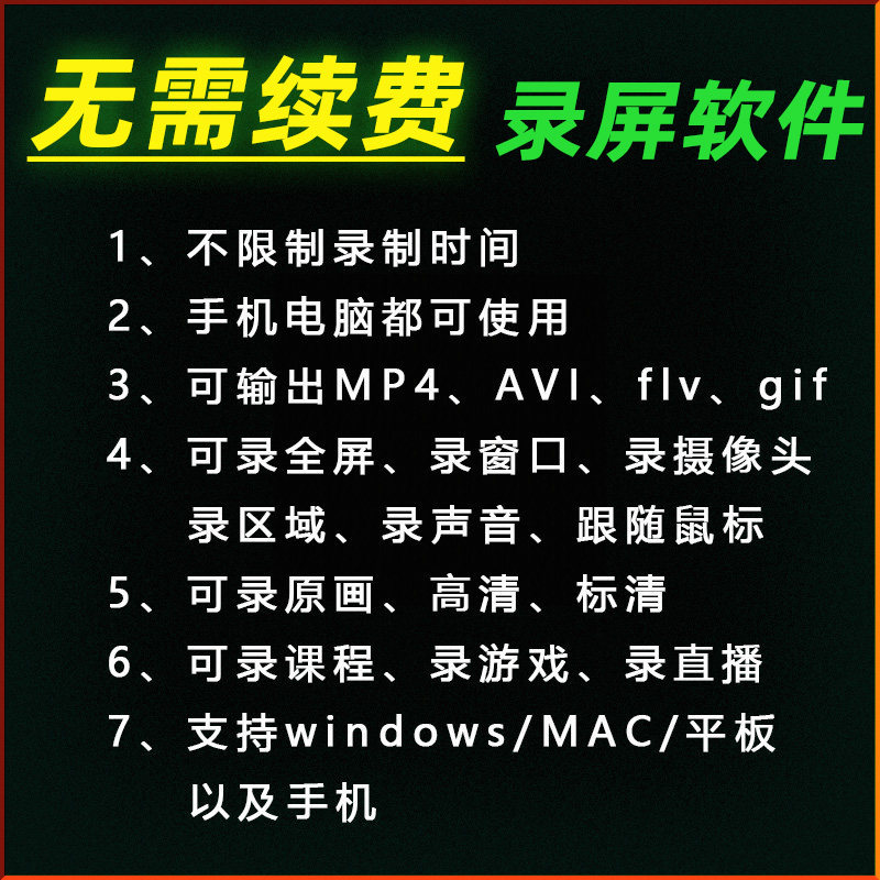📚 电脑录屏软件屏幕声音手机录像录制工具直播无水印MP4格式高清app