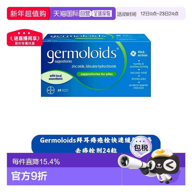 📚 欧洲直邮Germoloids拜耳痔疮栓快速缓解瘙痒疼痛内痔去痔缩小栓剂