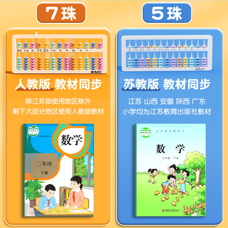📚 晨光珠心算算盘小学生专用一二年级7珠13档一键清盘彩色珠算盘人教版苏教版教材同步数学教具神器学习用品