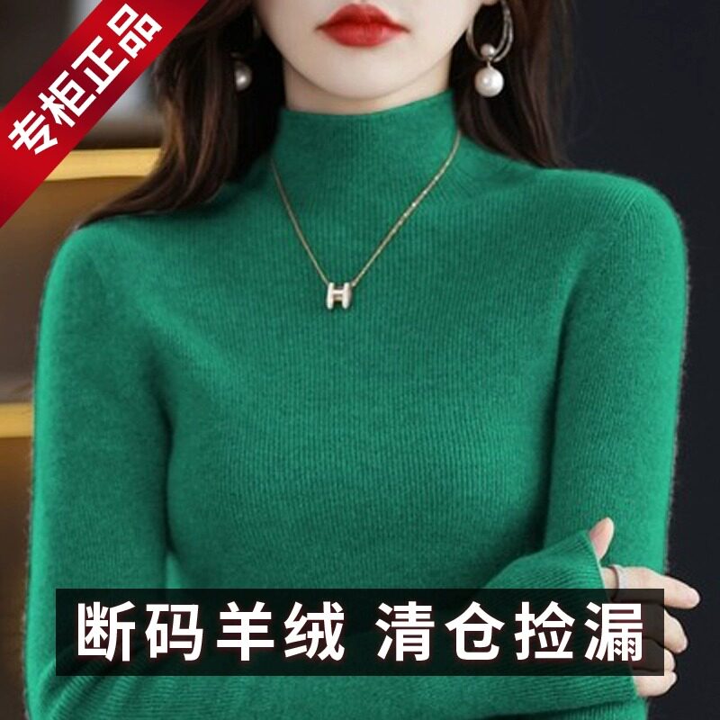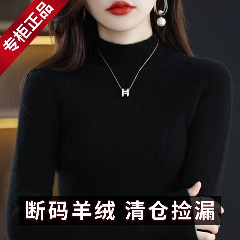 📚 断码清仓2024冬羊绒衫女短款秋冬季半高领修身毛衣羊毛针织打底衫