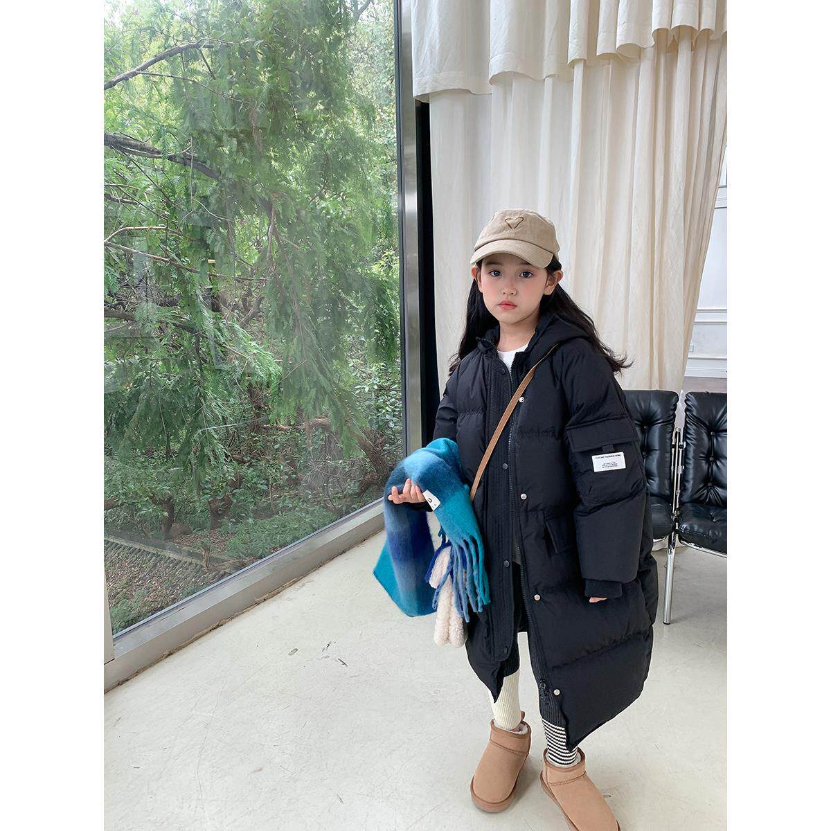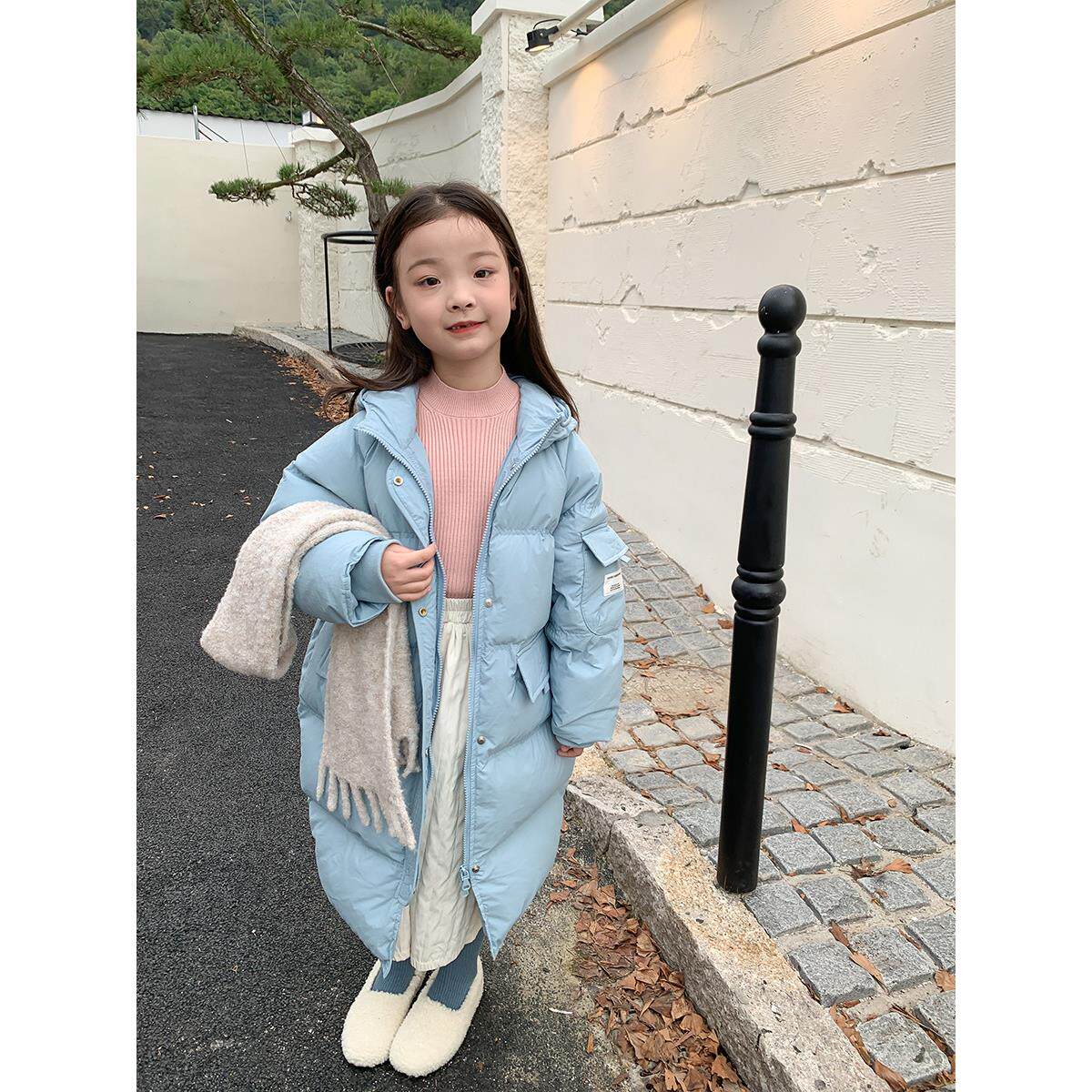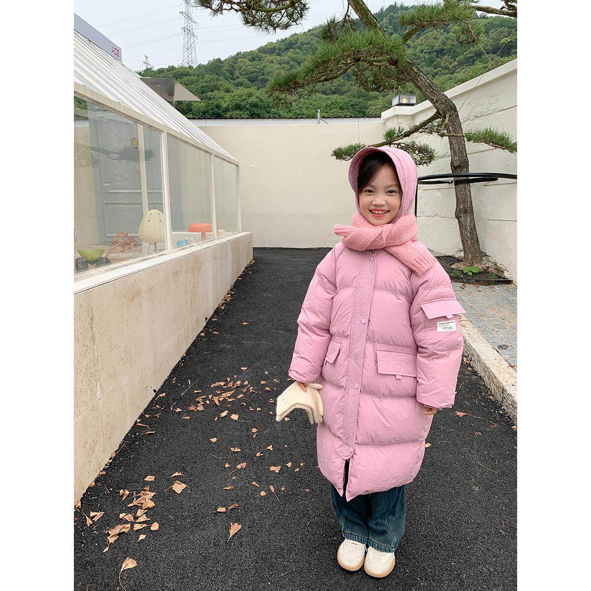 📚 新国标90白鸭绒女童韩版贴标加厚保暖中长款羽绒服儿童宝宝冬外套