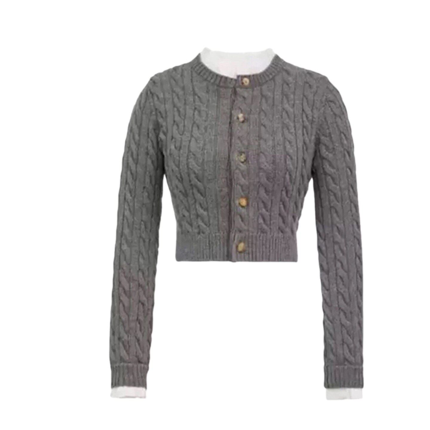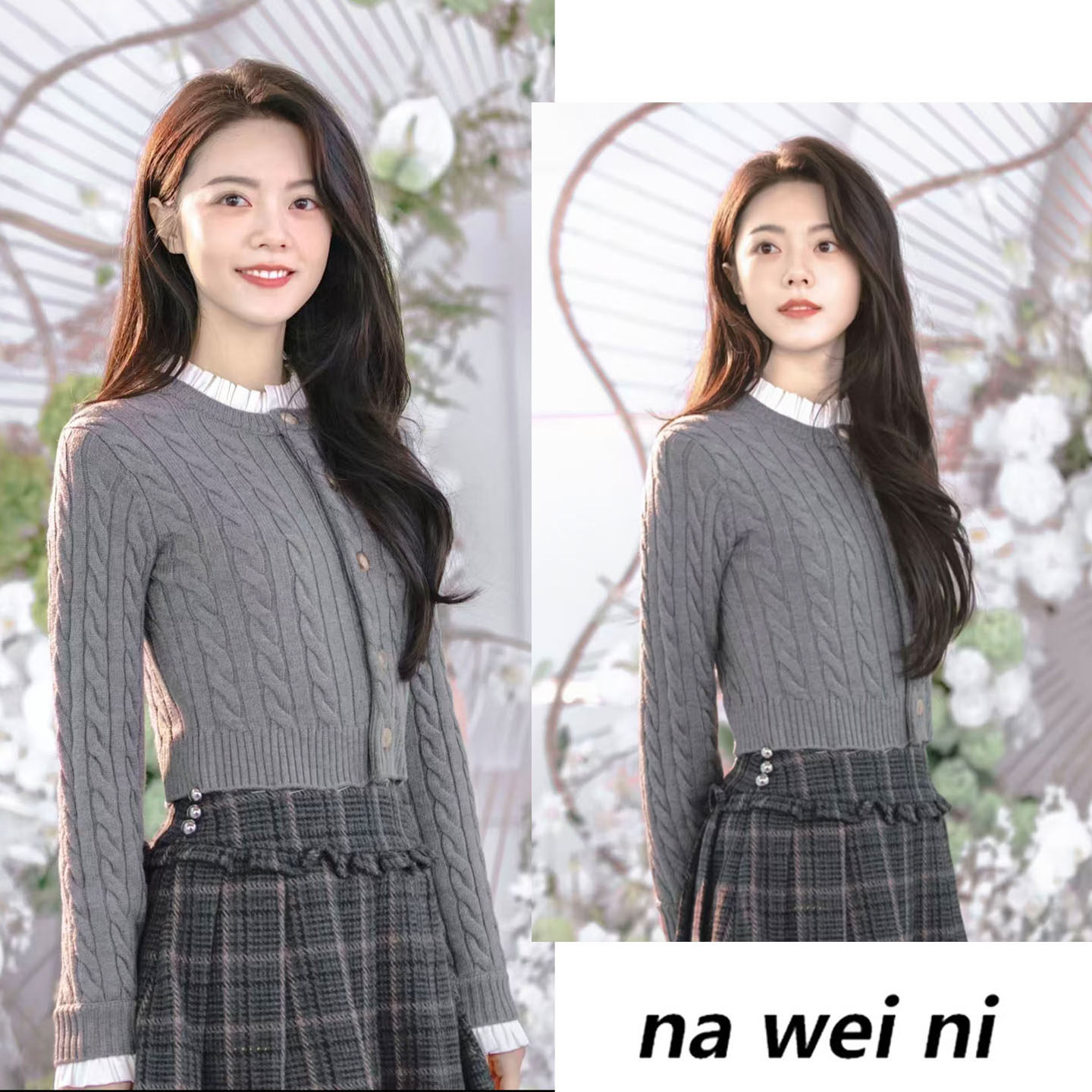 📚 骄阳似我赵今麦聂曦光同款灰色短款木耳边针织开衫女秋冬麻花毛衣