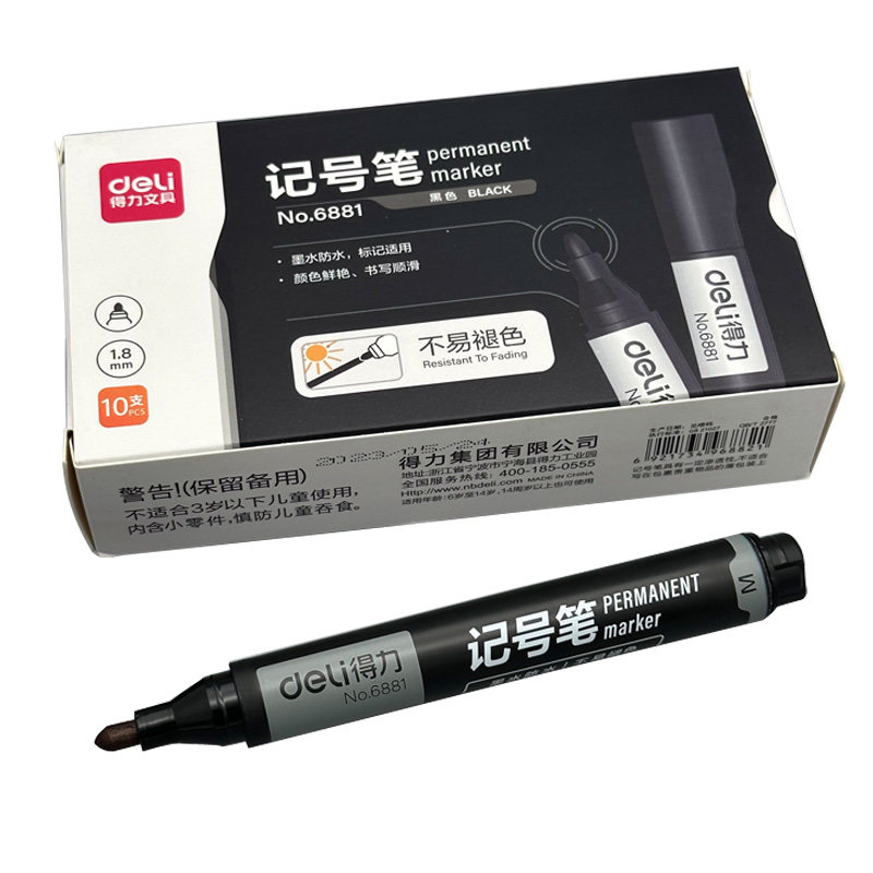 📚 得力大记号笔6881单头油性笔粗头箱头笔描边绘画黑红蓝黑色10支盒