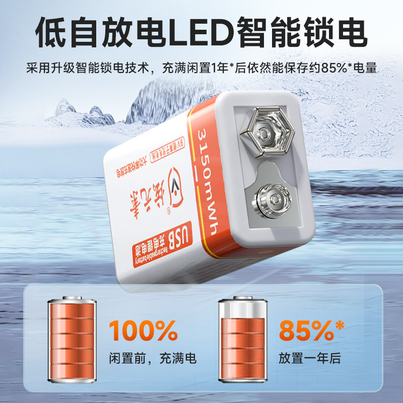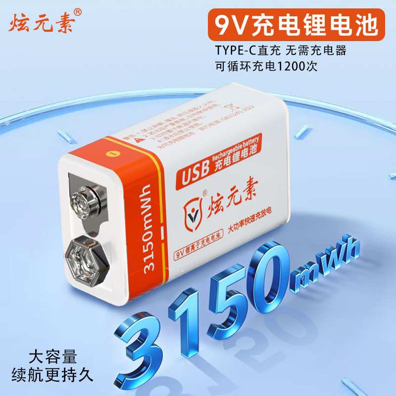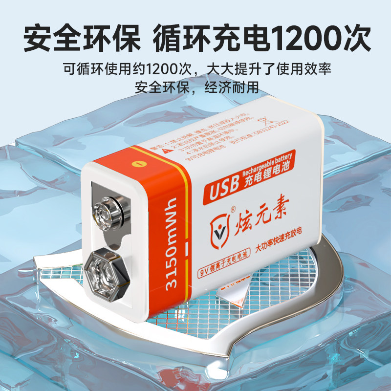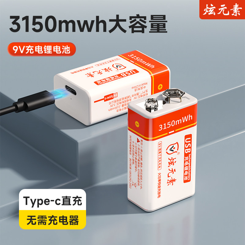 📚 炫元素9V可充电电池 USB大容量万用表锂电池检测仪话筒方块电池