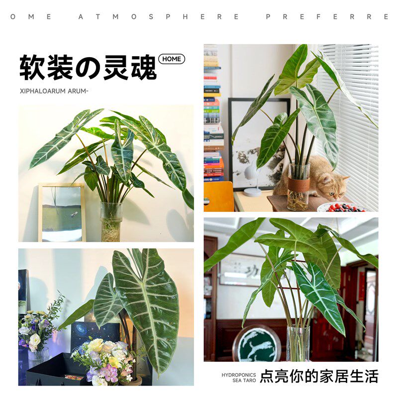 📚 银脉剑叶海芋水培植物花卉办公室内桌面水养绿植好养活四季除甲醛