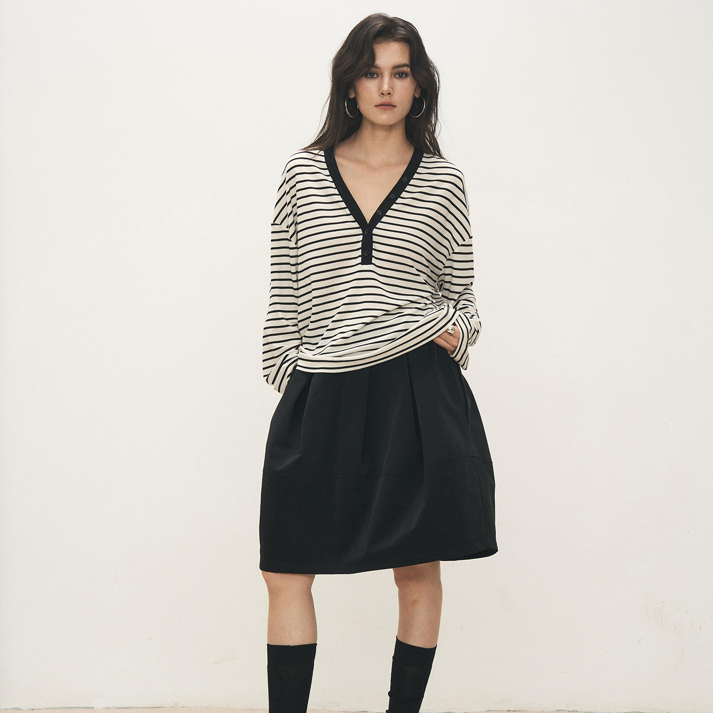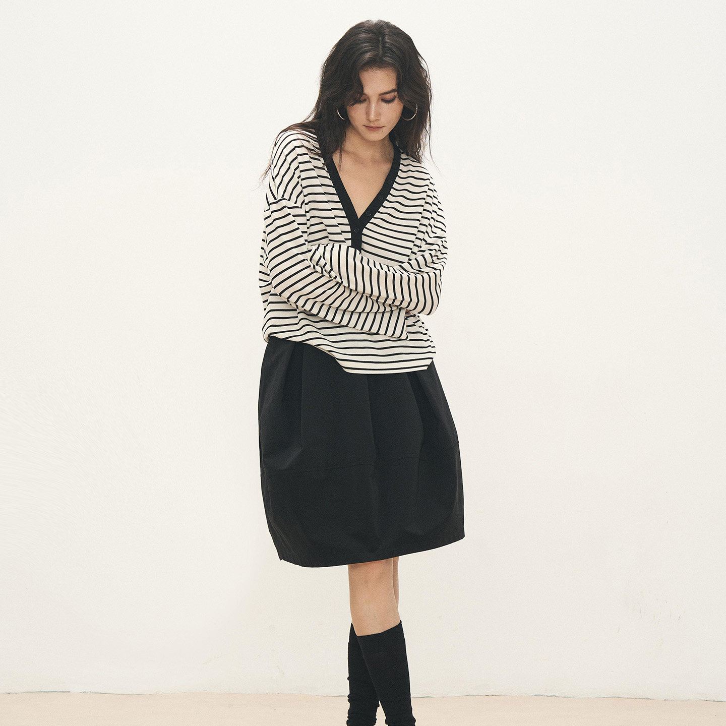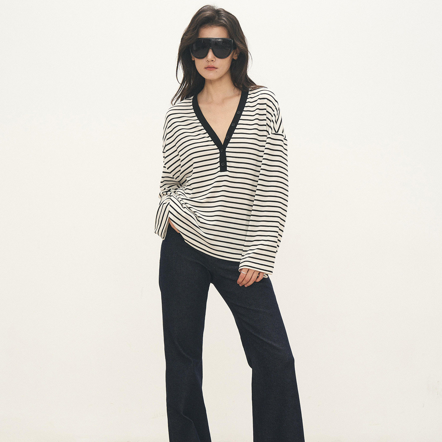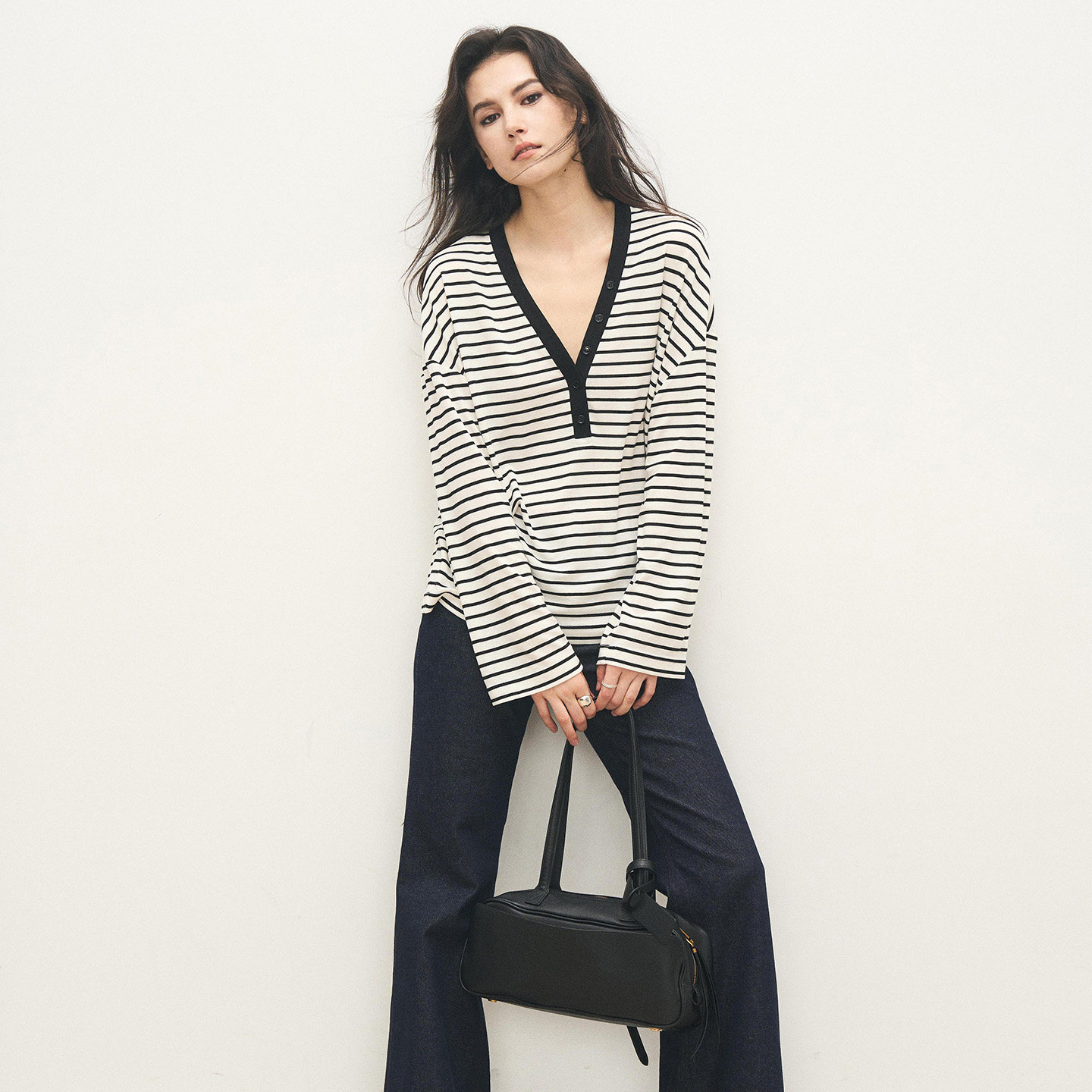📚 ANTIFORM背构 2025新款天丝羊毛高级感宽松舒适慵懒V领条纹上衣女