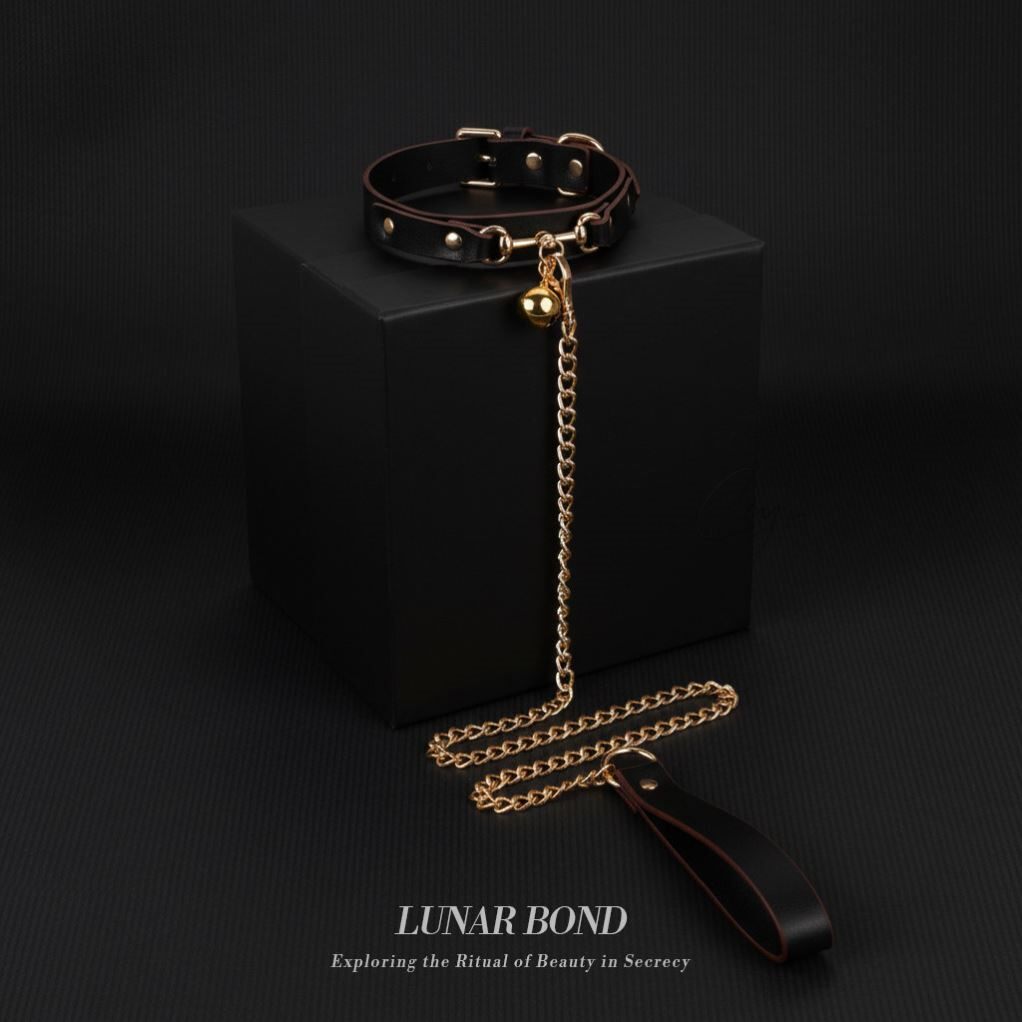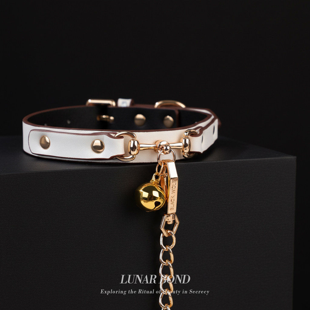 📚 高级铃铛项圈情调小狗牵引绳choker狗链男女生m黑色皮革