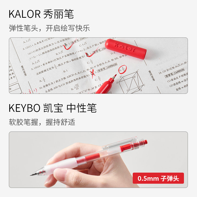 📚 KACO红笔中性笔学生专用红笔套装5支教师批改作业st尖 按动式红色水笔秀丽笔速干圆珠笔纠错备考标记重点