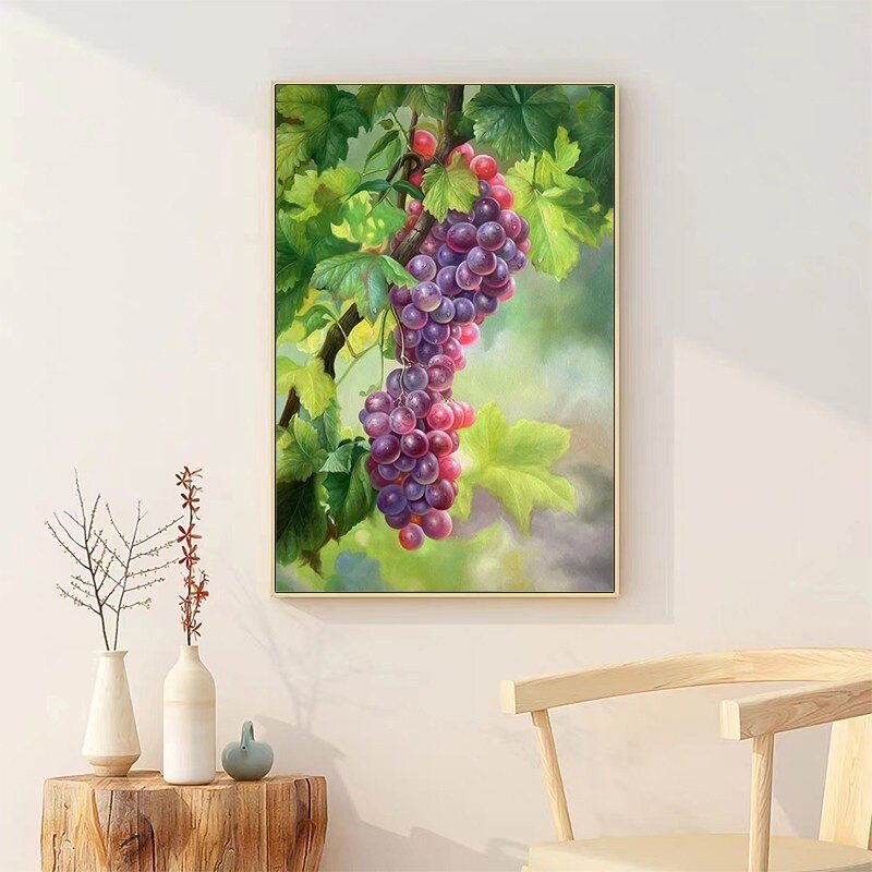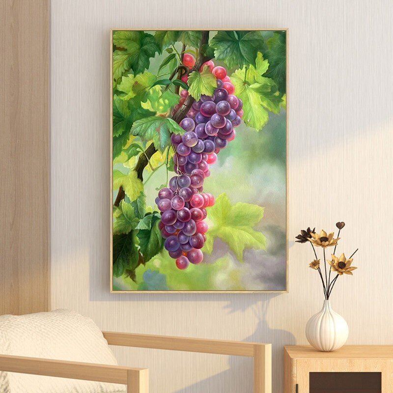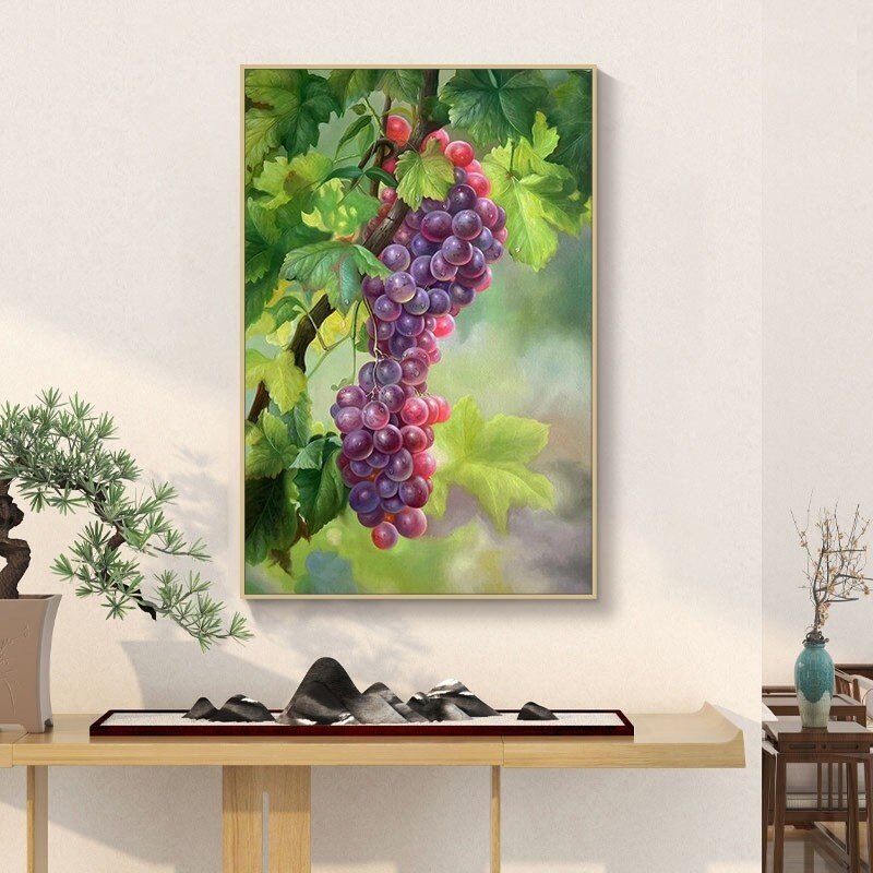 📚 紫气东来喷绘油画客厅写实葡萄装饰画新中式玄关硕果累累餐厅挂画