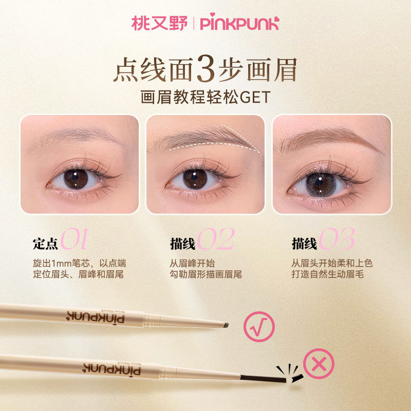 📚 【拍2发5】桃又野砍刀眉笔持久防水不脱色根根分明野生眉女新手