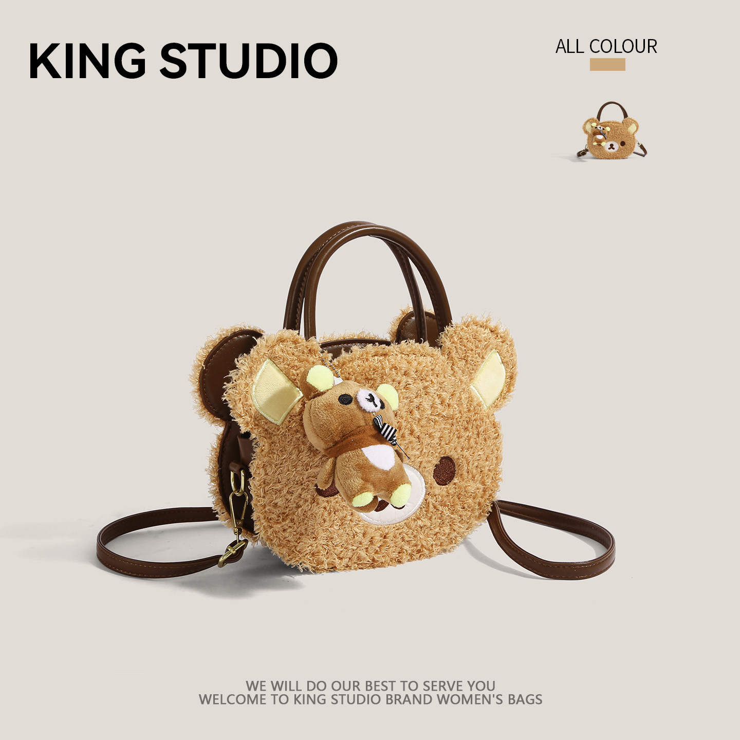 📚 可爱毛绒小熊手提包包女2026新款小众设计时尚卡通百搭单肩斜挎包