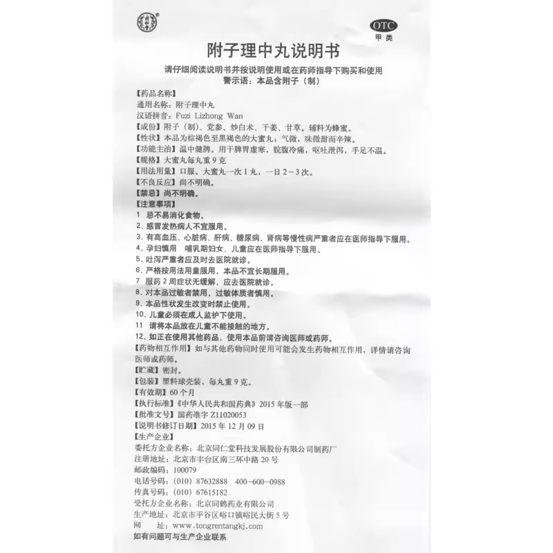 📚 附子理中丸北京同仁堂正品官方旗舰店大蜜丸养胃调理脾胃非仲景牌