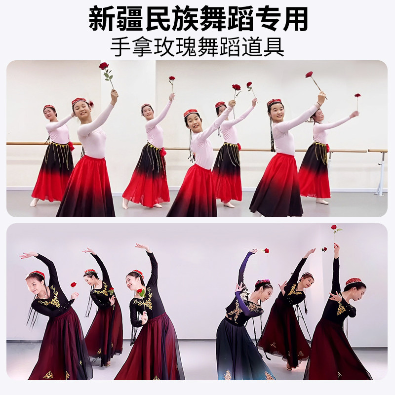 📚 新疆舞蹈手拿红色玫瑰花古典舞仿真花舞台演出饰品手拿假花道具