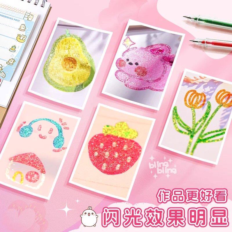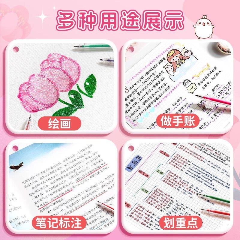 📚 彩色闪光笔啫喱发光亮晶晶流沙银光变色做的手帐专用珠光标记儿童做笔记闪亮金属闪粉水彩笔荧光划重点多色