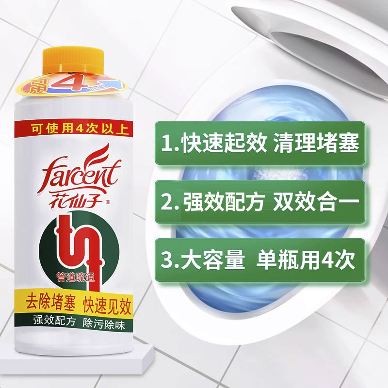 📚 farcent花仙子管道疏通剂强力溶解厨房油污马桶下水道疏通堵塞剂
