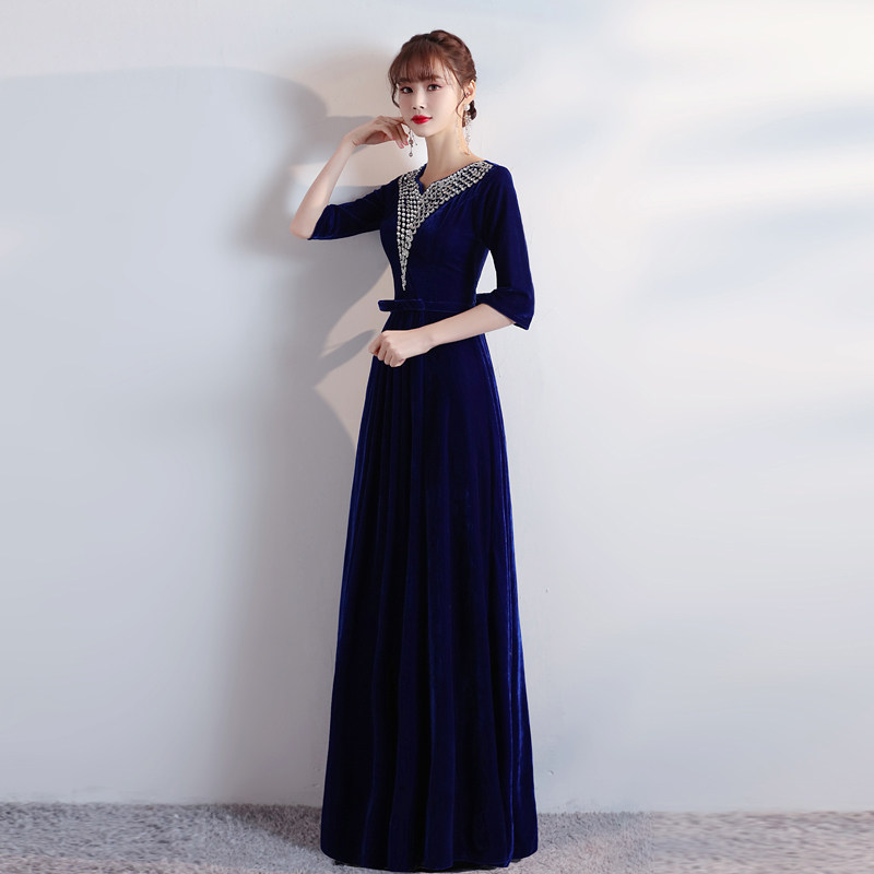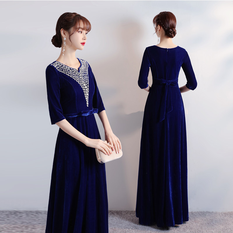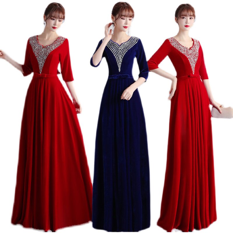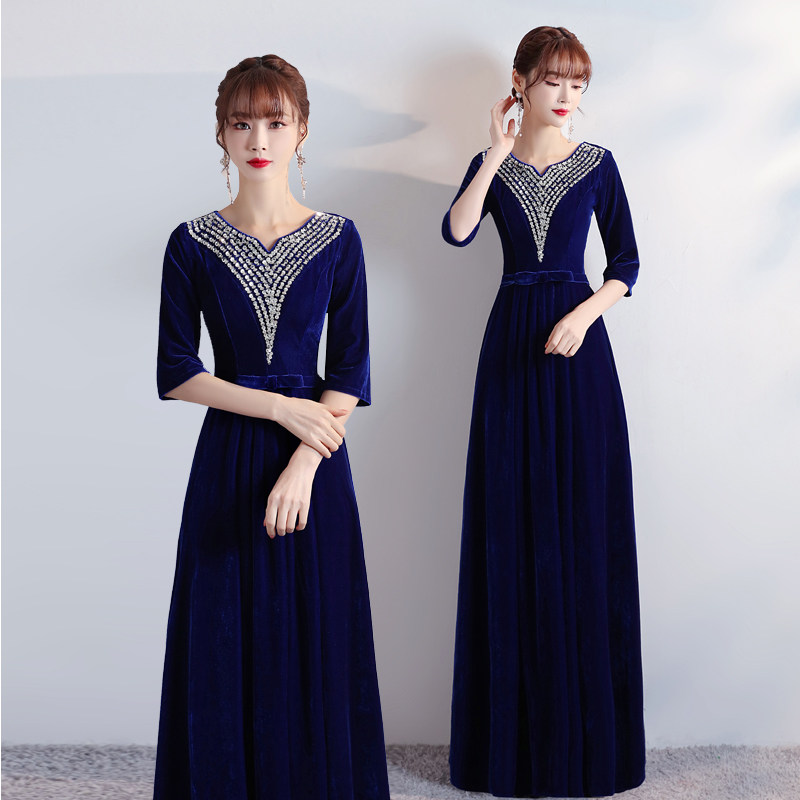 📚 大合唱演出服女长裙礼服舞台表演指挥服金丝绒修身显瘦团体合唱服