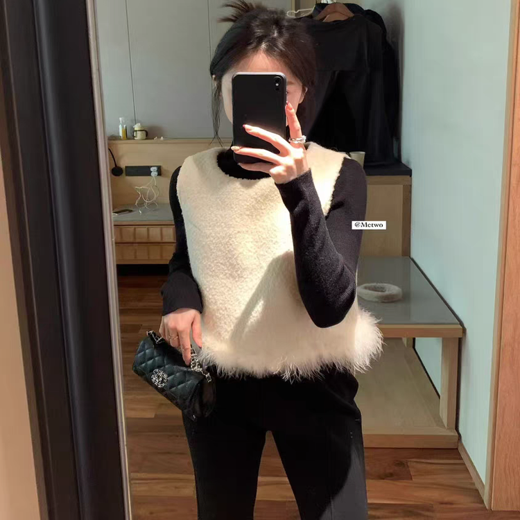 📚 METWO 2250#奶白色贵气小香马甲女2024冬季新款小香风坎肩背心