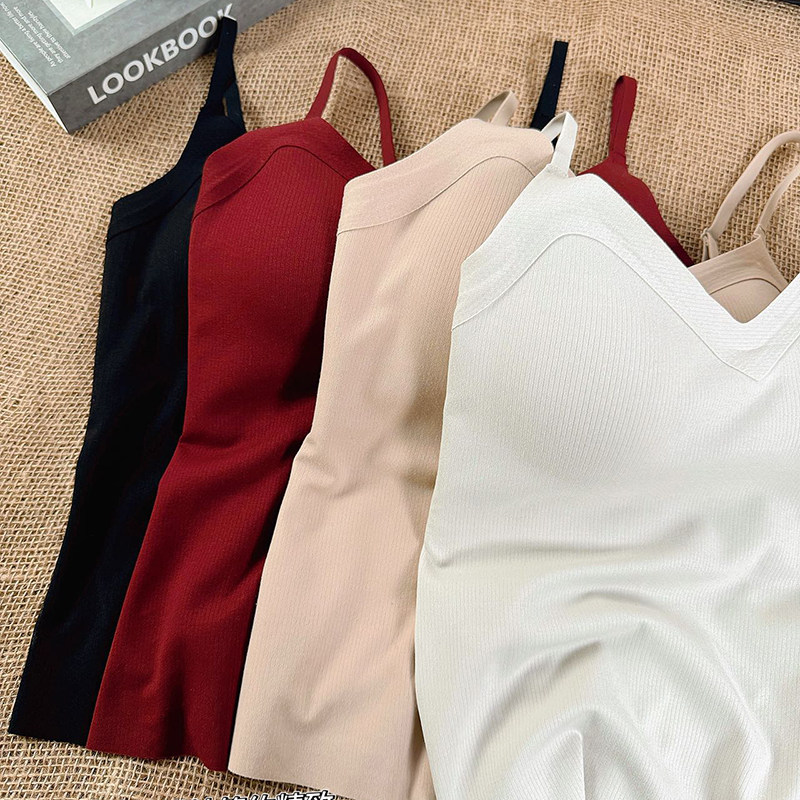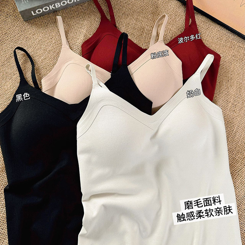 📚 贝莱娅自带胸垫保暖背心女秋冬细带美背内搭磨毛修身吊带打底上衣
