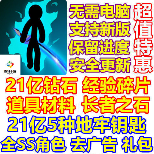 📚 Epic Stickman 史诗火柴人 21亿钻石 道具材料 去广告 SS人物礼包