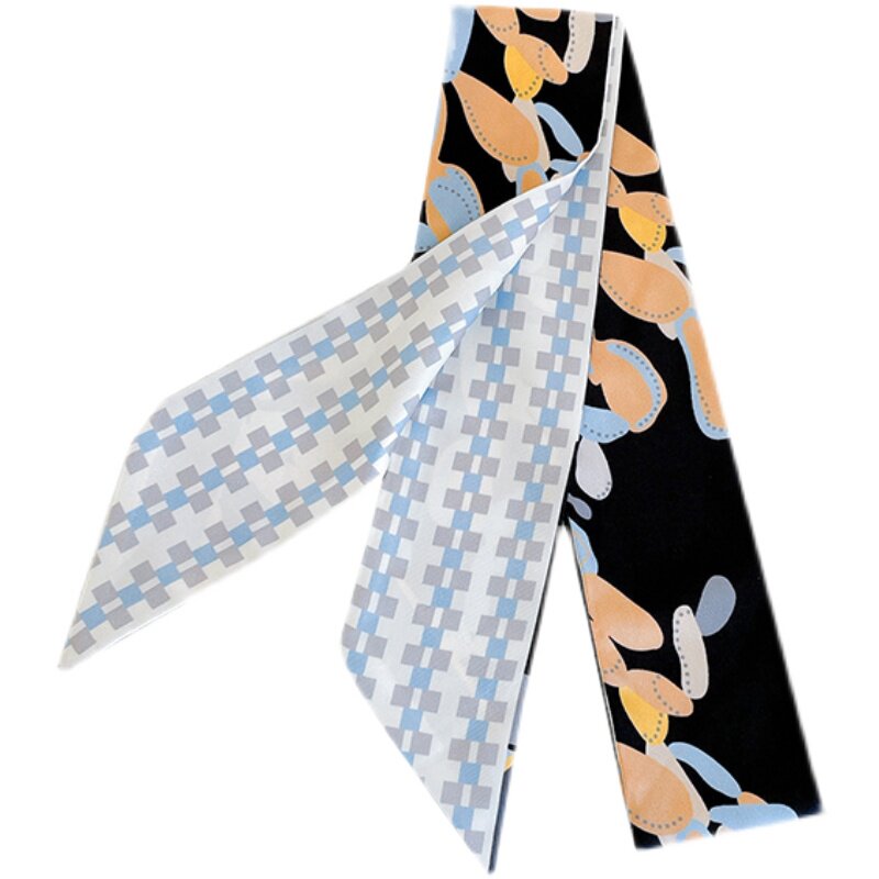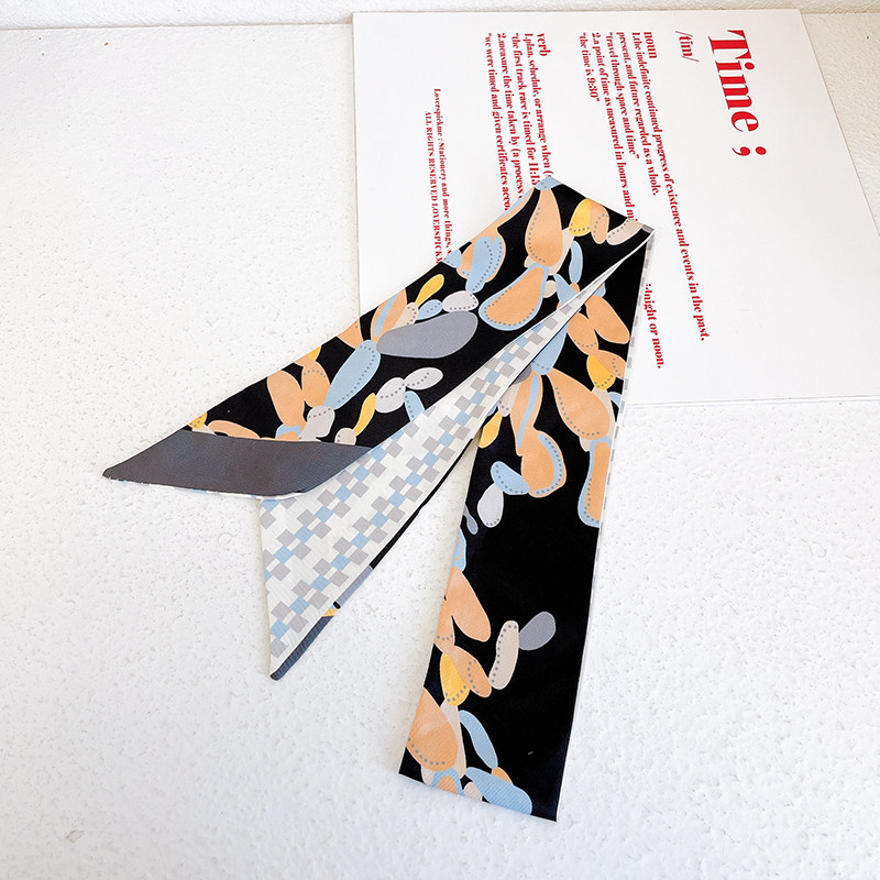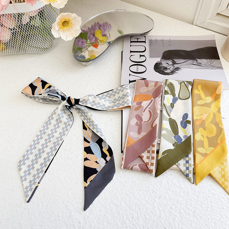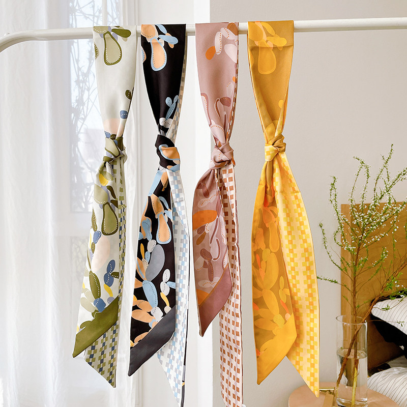 📚 春季新款细窄长条围巾女童趣植物印花小飘带小众设计洋气丝巾发带