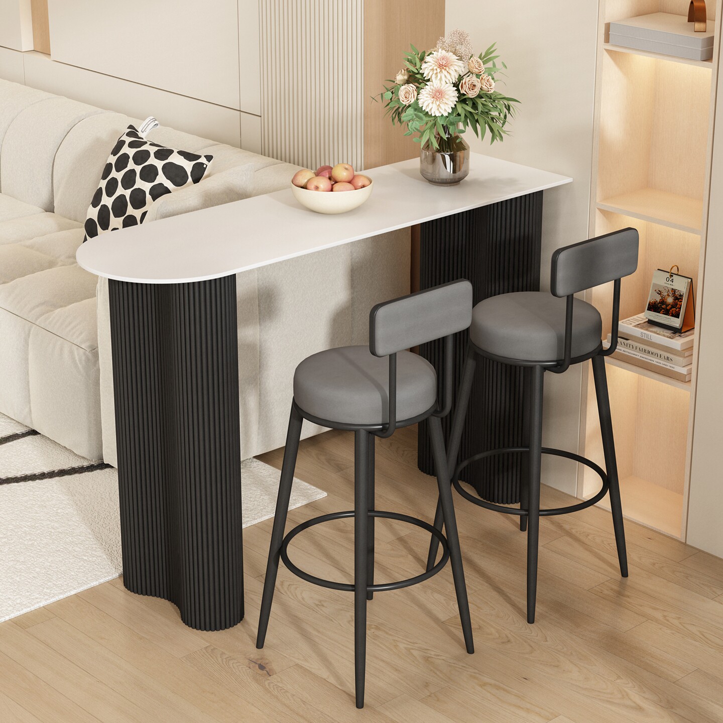 📚 轻奢长条桌岩板吧台桌奶油风家用阳台客厅沙发边隔断商用酒吧高脚