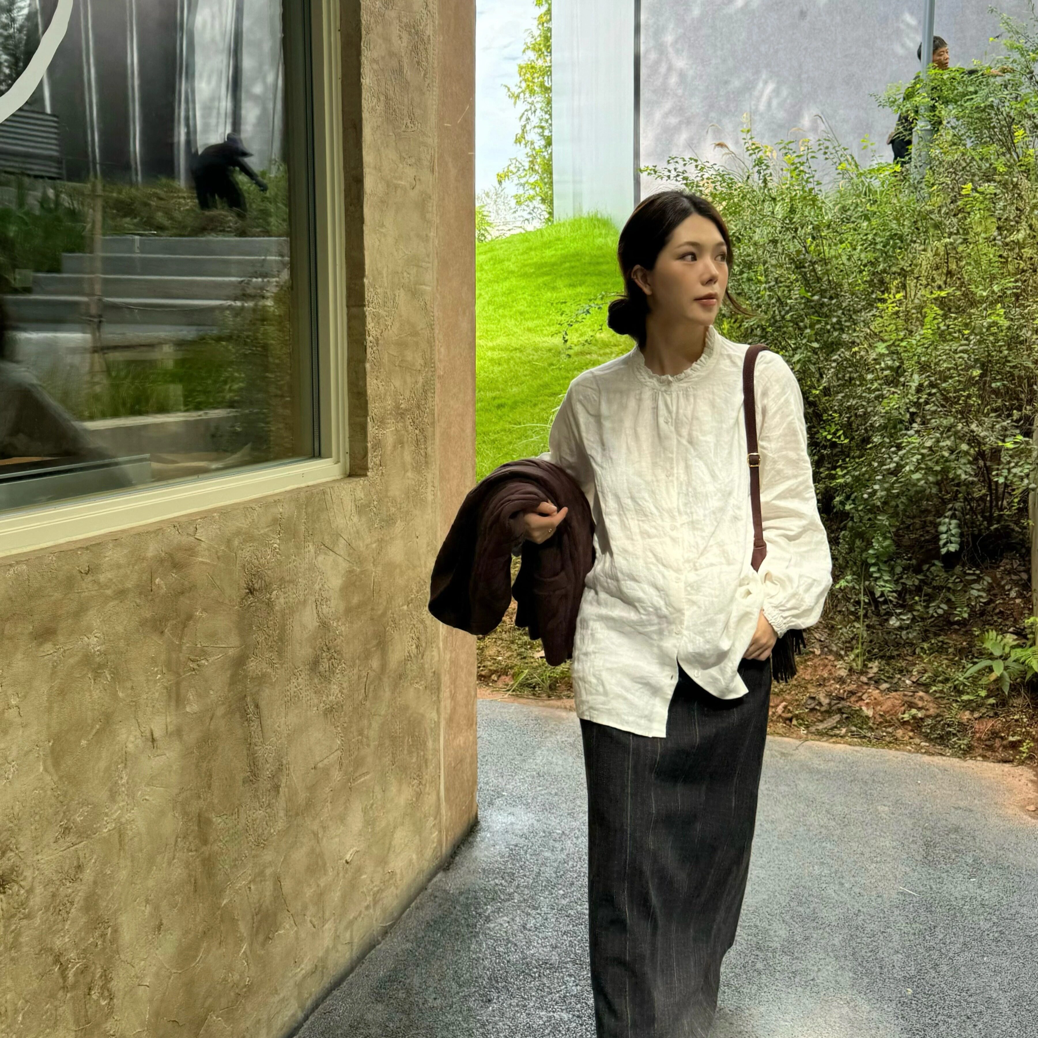 📚 3ts1oo亚麻褶皱肌理衬衫法式白色简约宽松长袖衬衣上衣
