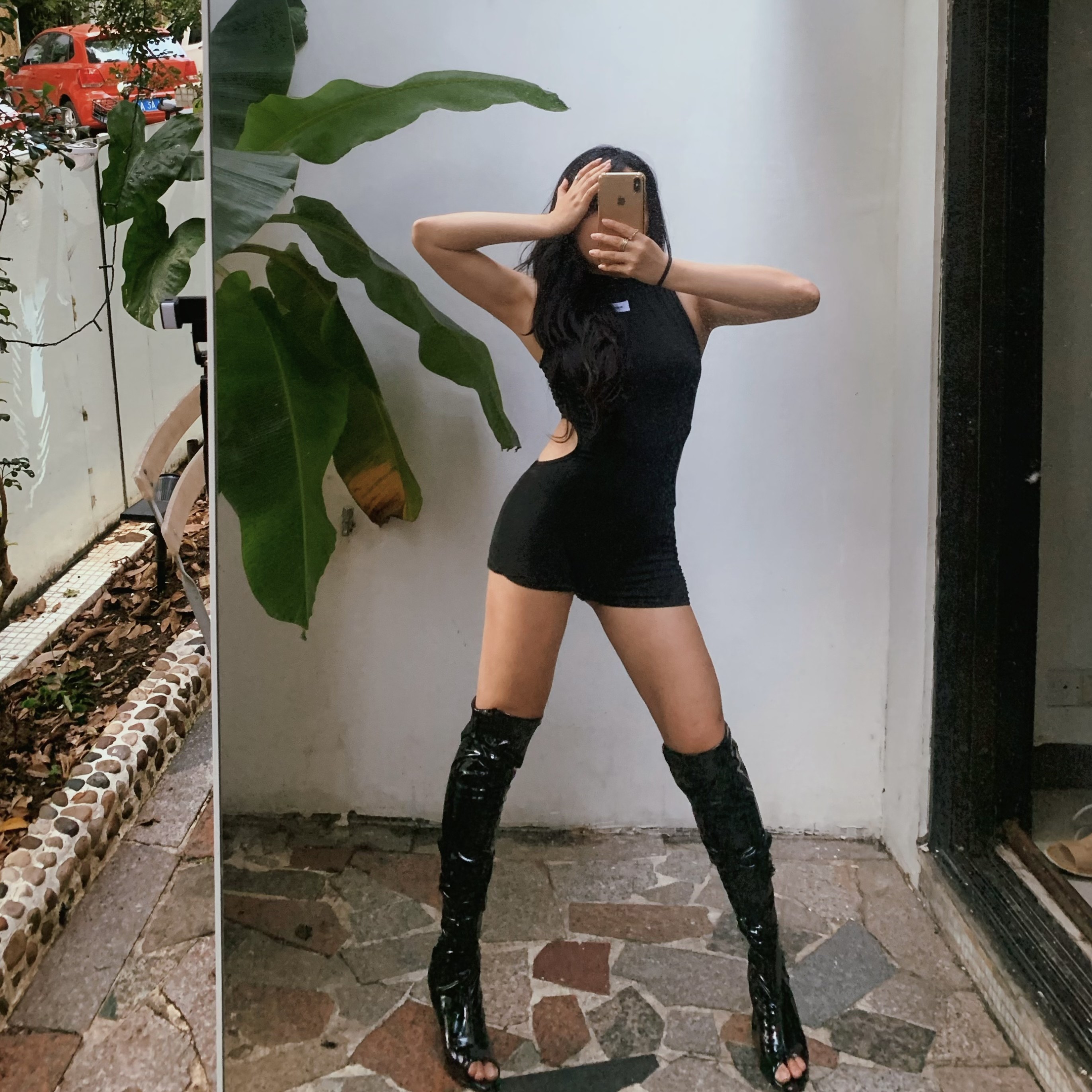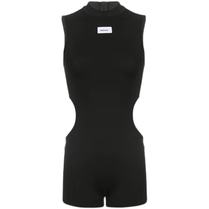 📚 1996 欧美性感爵士舞高领连体衣无袖高开叉连体裤heels紧身上衣女