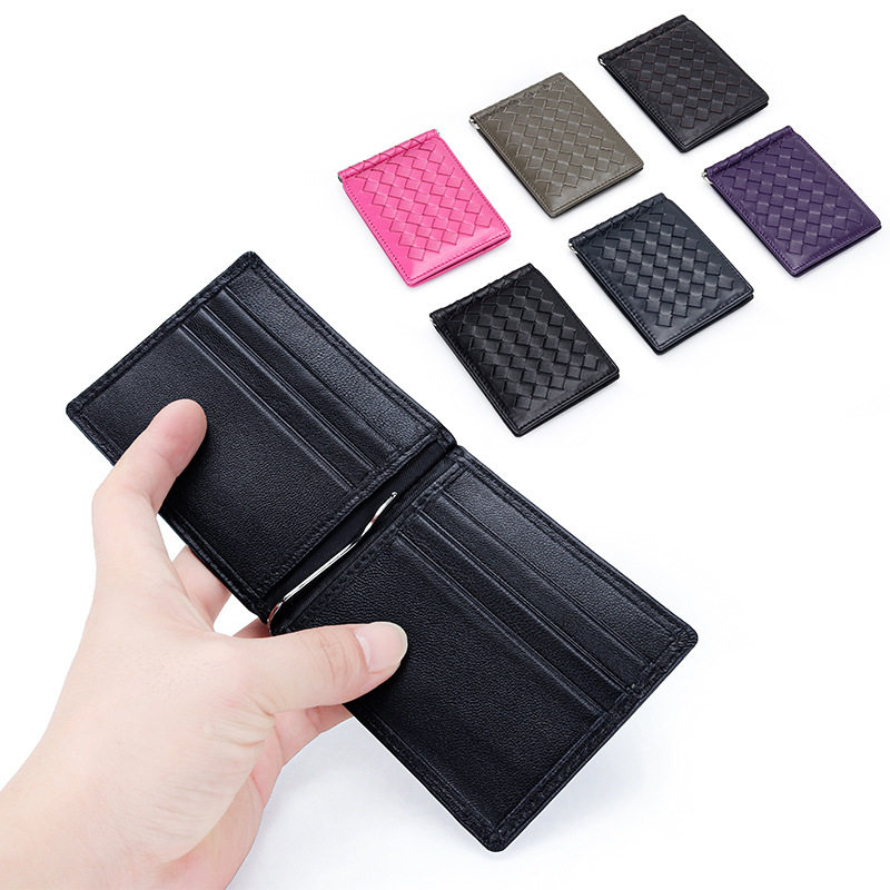 📚 纯羊皮新款真皮编织钱夹男女士短款超薄钱包对折二合一卡包证件