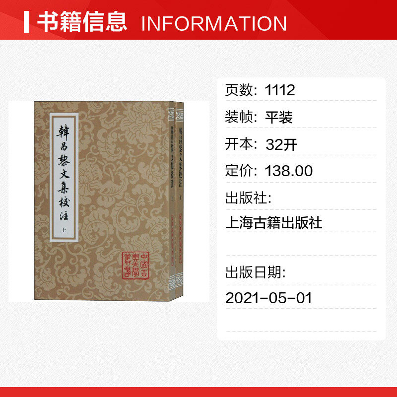 📚 韩昌黎文集校注(全2册) [唐]韩愈 著 历史知识读物文学 新华书店正版图书籍 上海古籍出版社