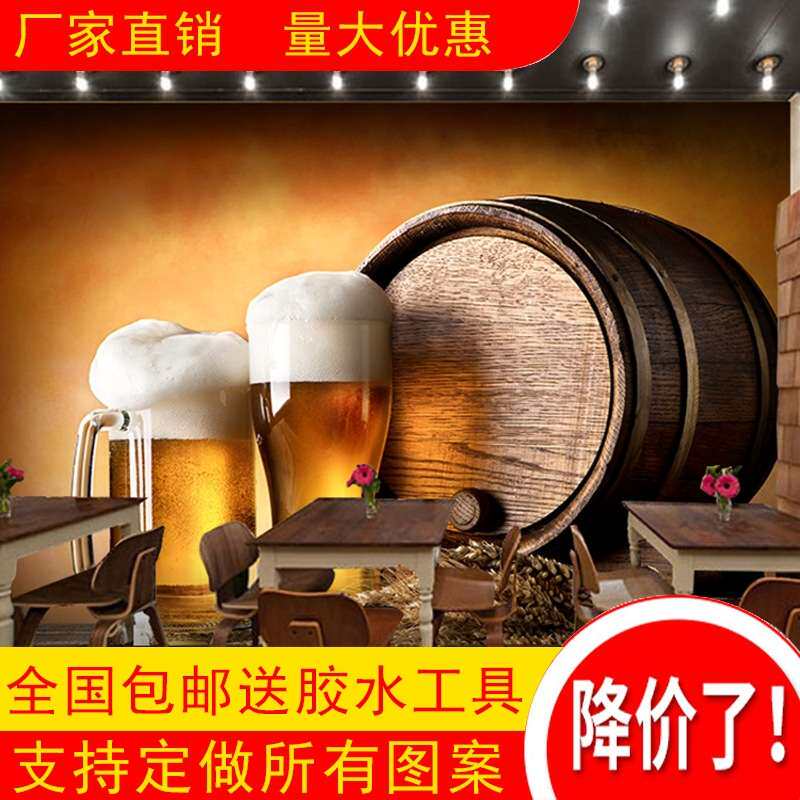 📚 3D复古酒吧墙纸啤酒主题酒文化壁画休闲吧餐厅咖啡厅烧烤店壁纸
