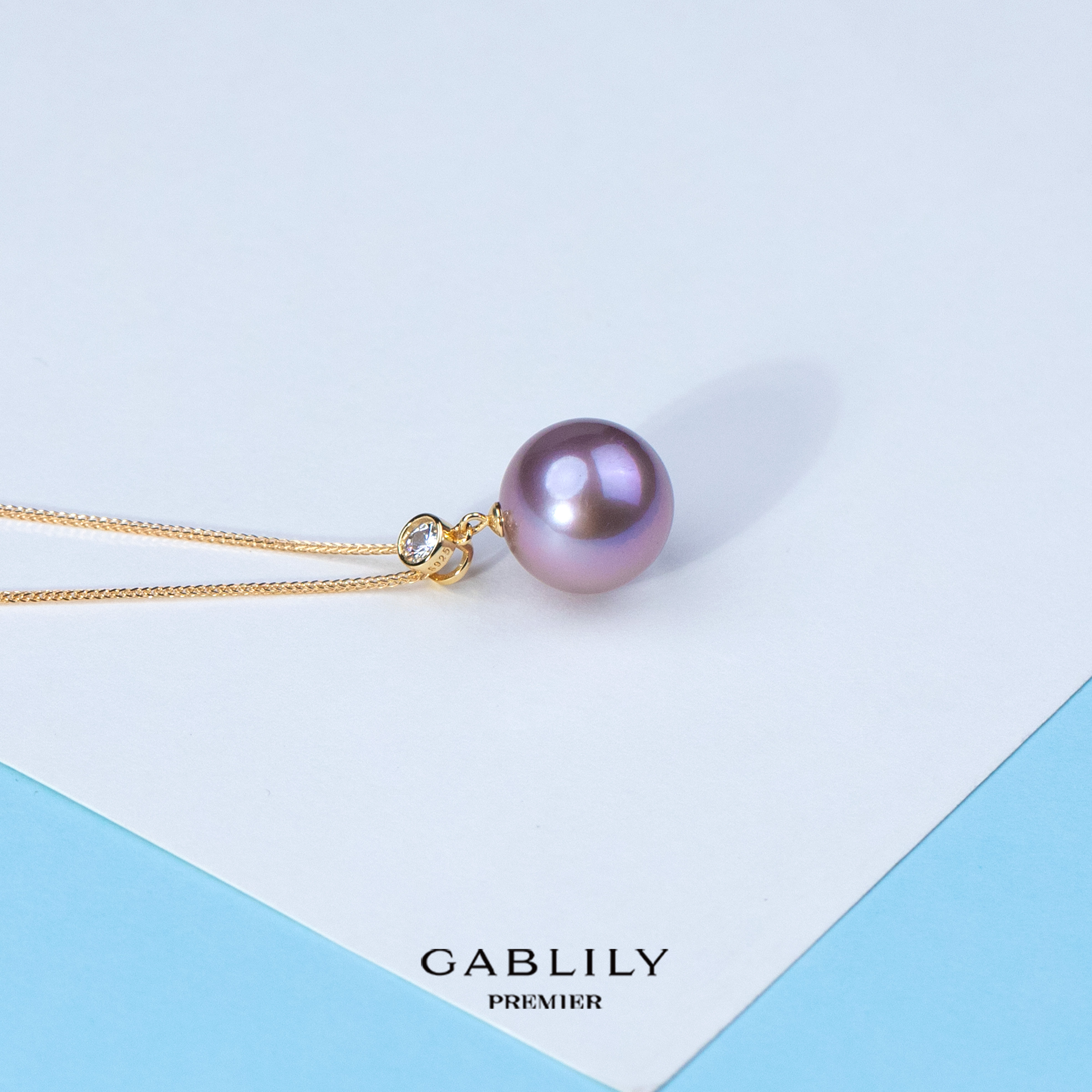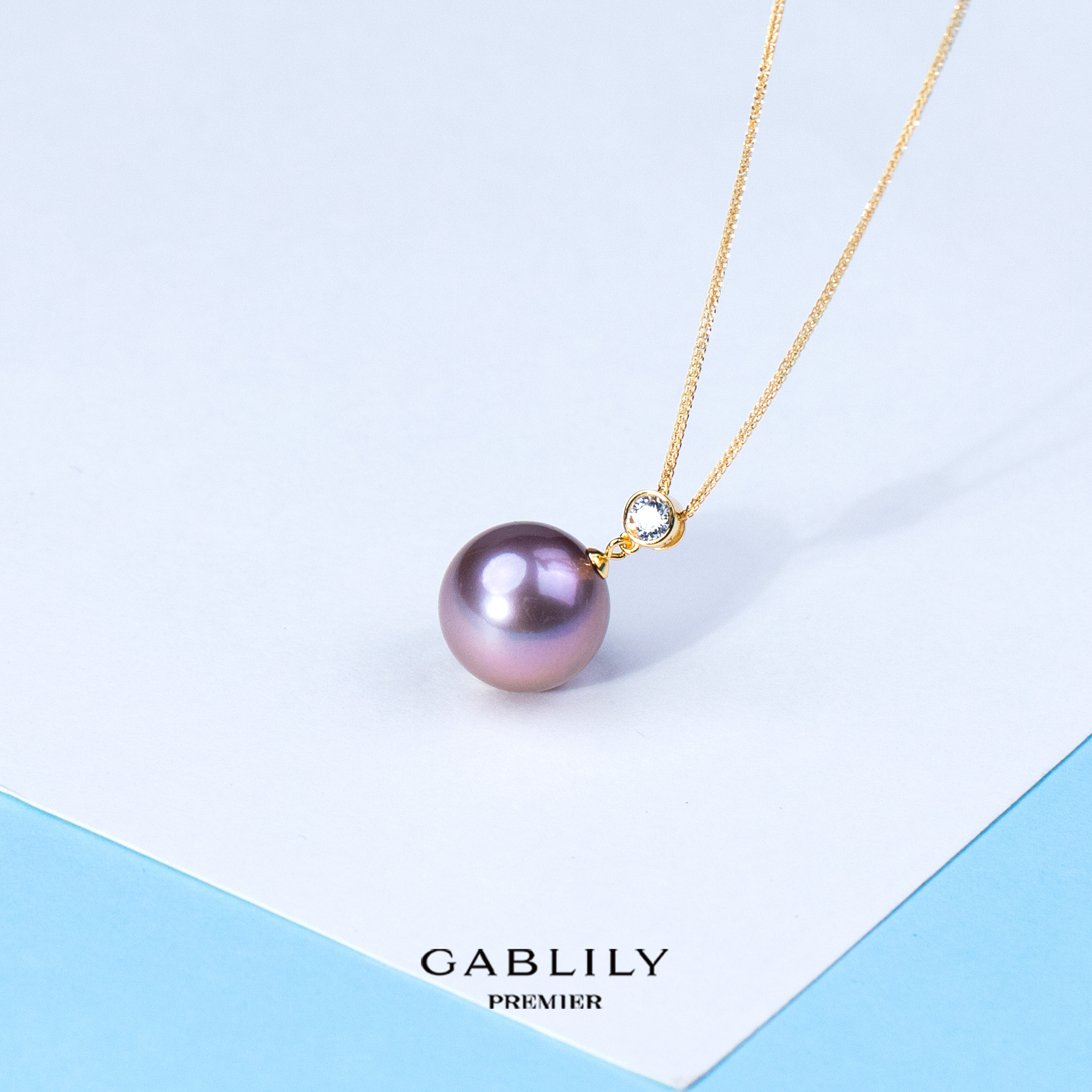 📚 ANGEPERLE/天使之泪淡水珍珠紫珠吊坠-50公分肖邦链14-15mm