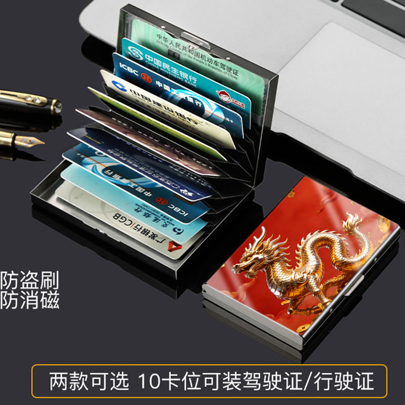 📚 12生肖不锈钢防消磁卡包男商务多卡位防盗刷驾驶证卡片收纳盒