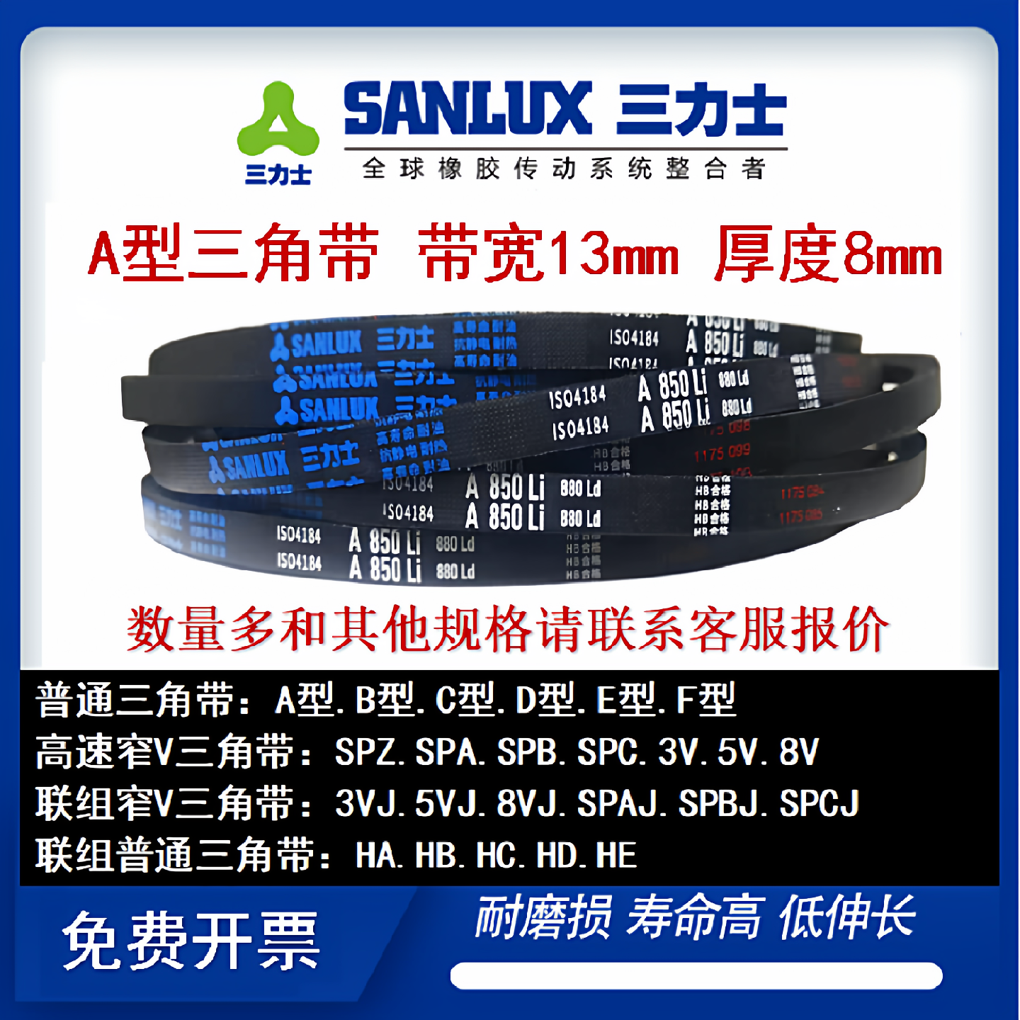 📚 三力士三角带A型380-4500切割机器抗静电橡胶窄V工业传动风柜皮带