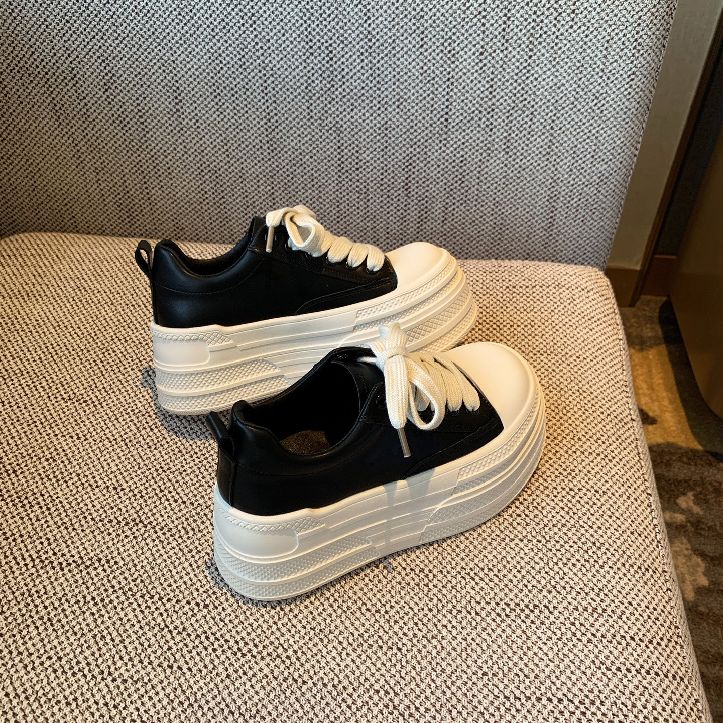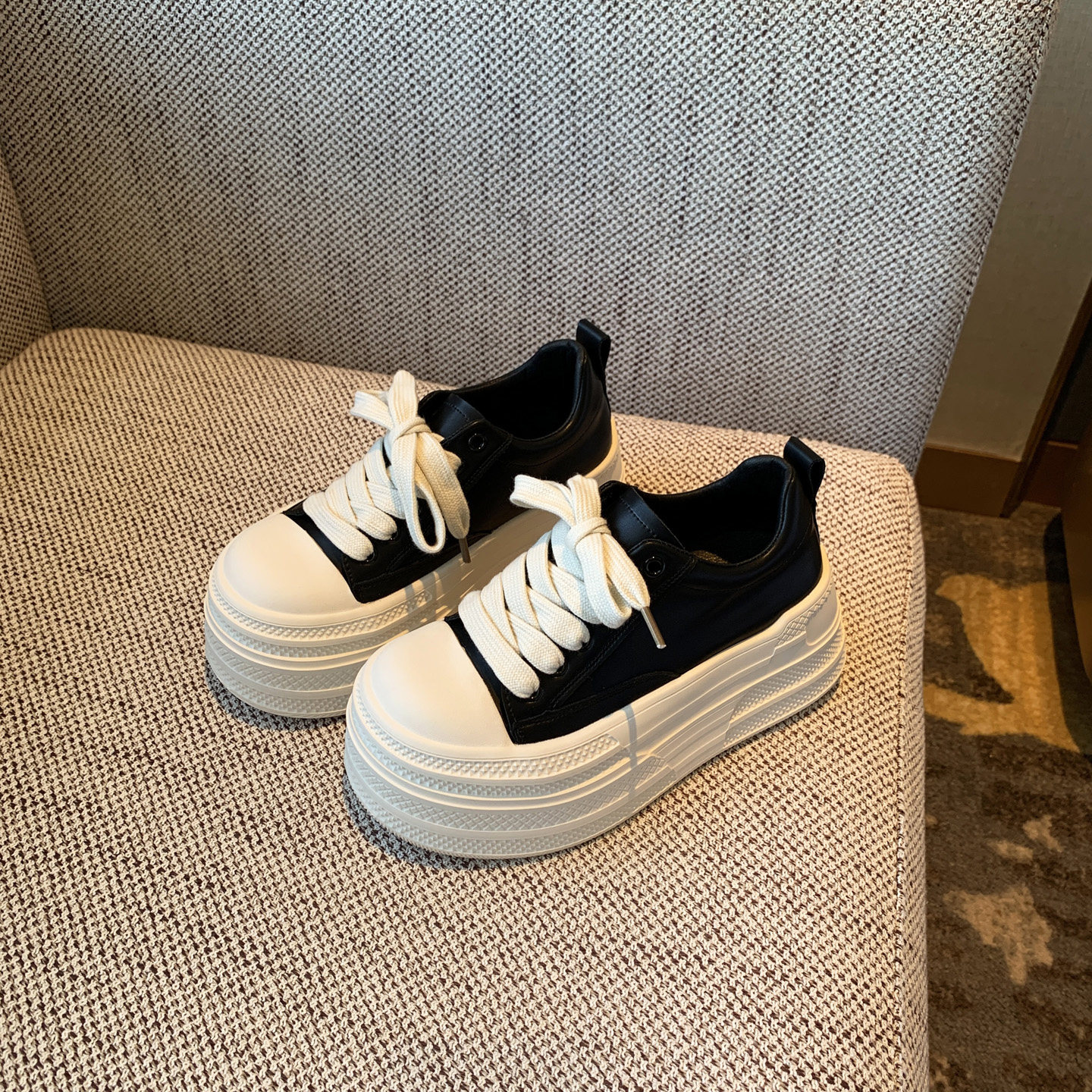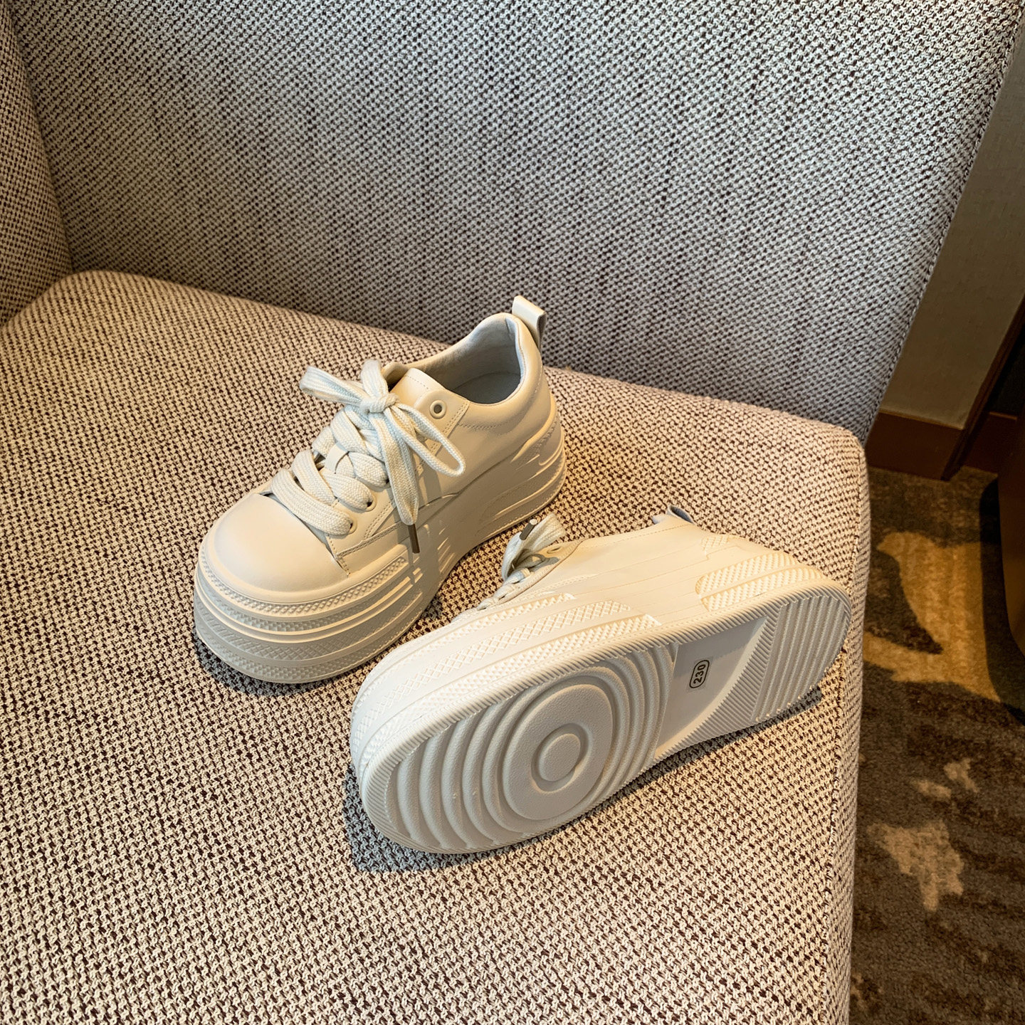 📚 【TFM】2026春季新款厚底面包小白鞋女增高系带百搭休闲运动板鞋