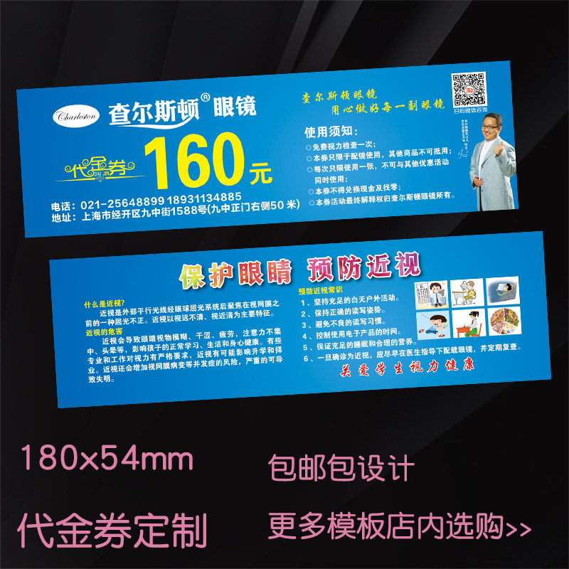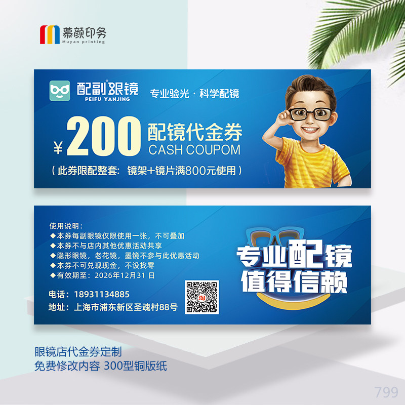 📚 眼镜店代金券定制优惠券近视配镜现金卡抵扣券印刷5080设计制作纸