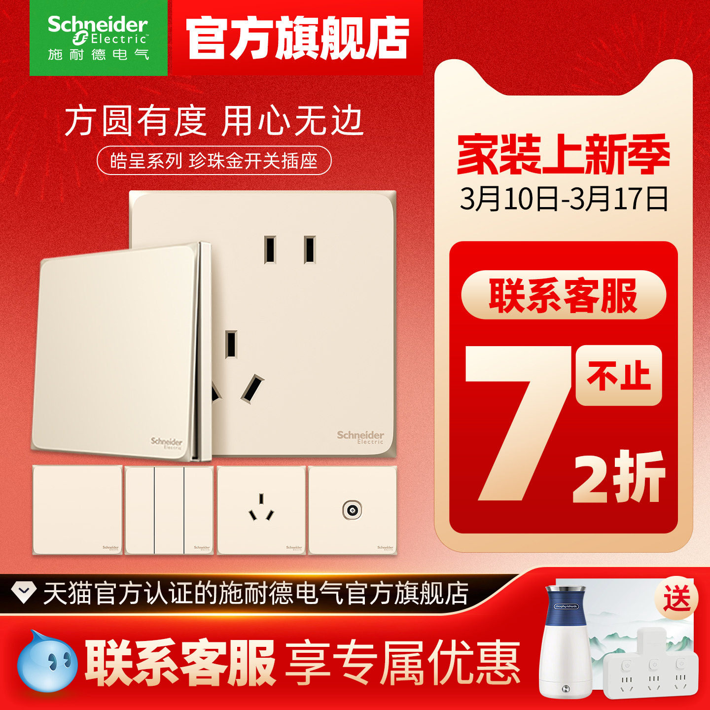 📚 施耐德官方旗舰店官网插座开关面板家用86型五孔电源插座皓呈金