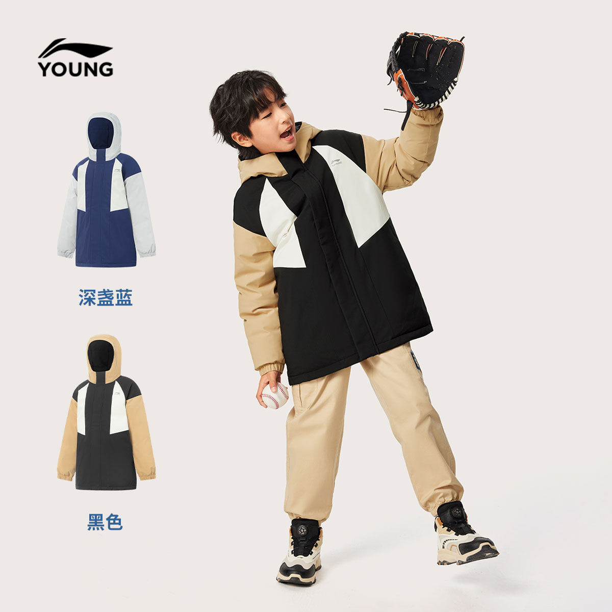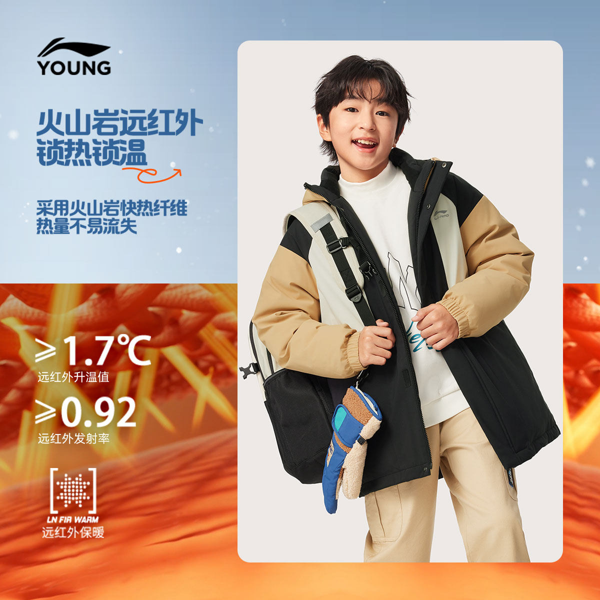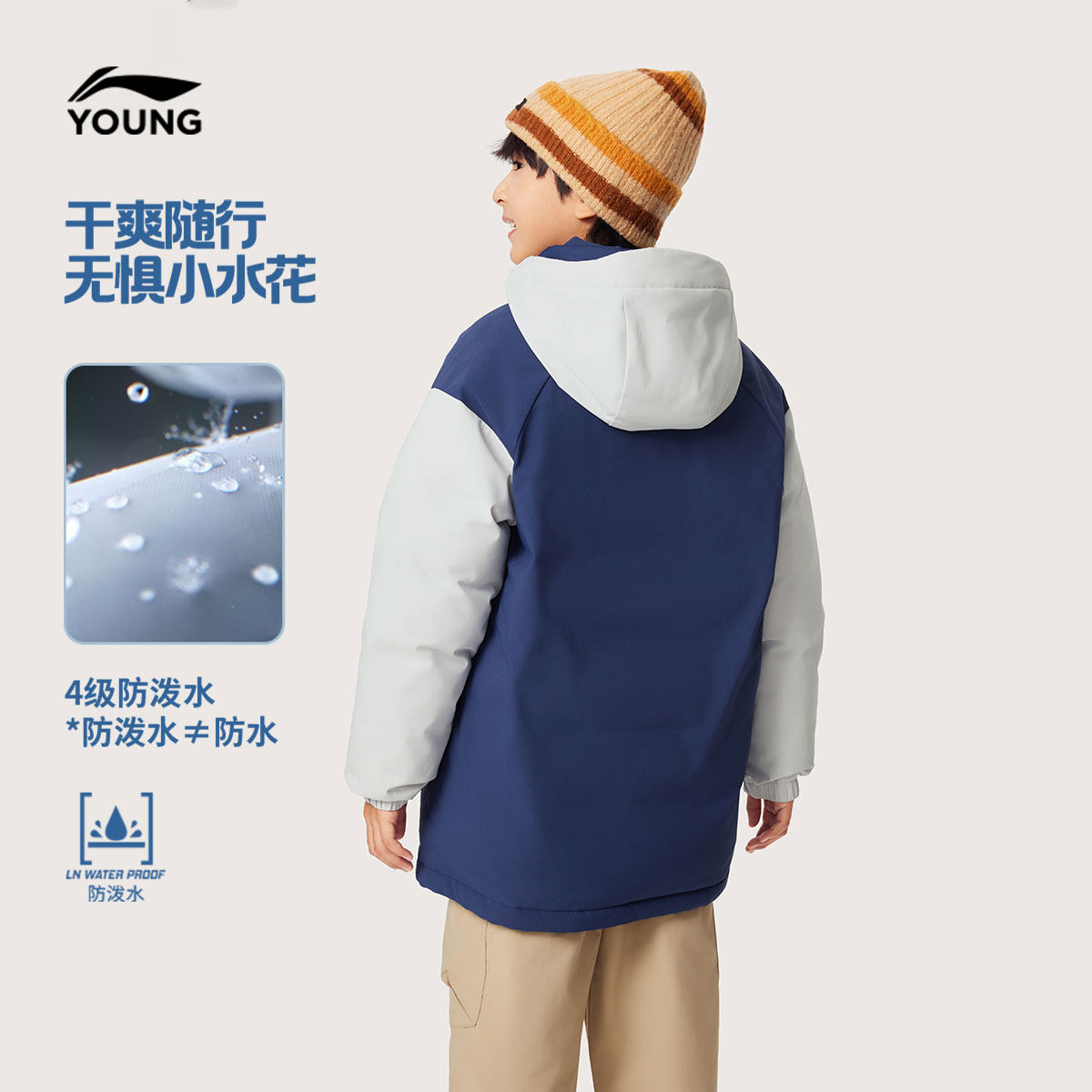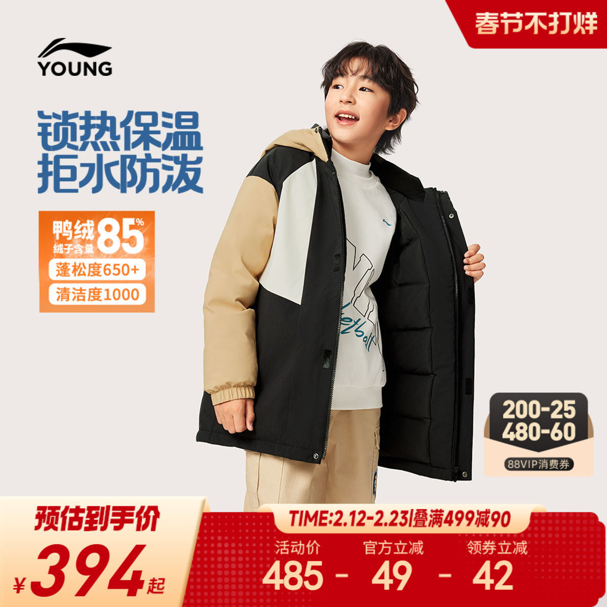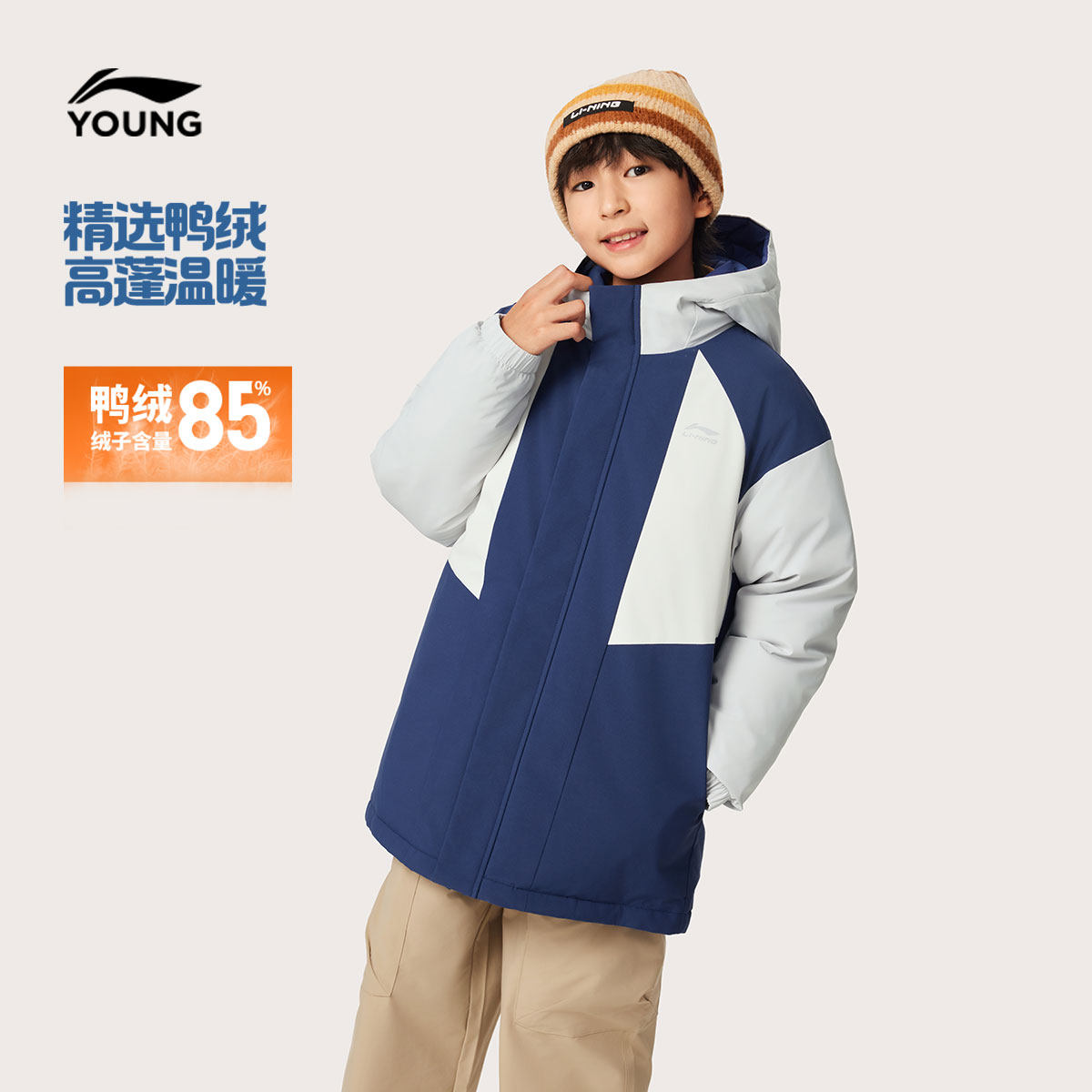 📚 李宁童装中长款羽绒服男大童25外套运动生活系列冬季休闲鸭绒童装