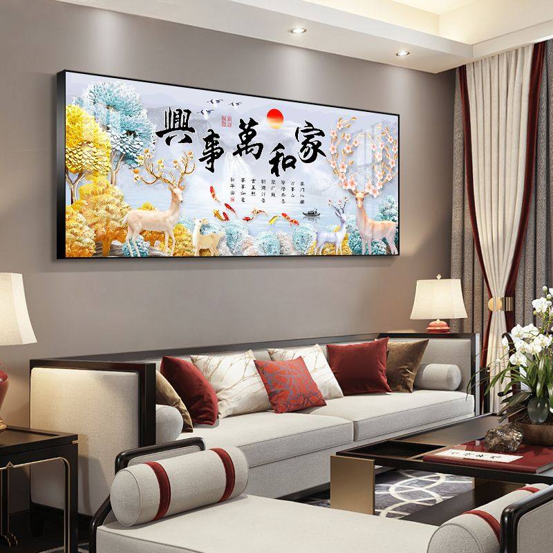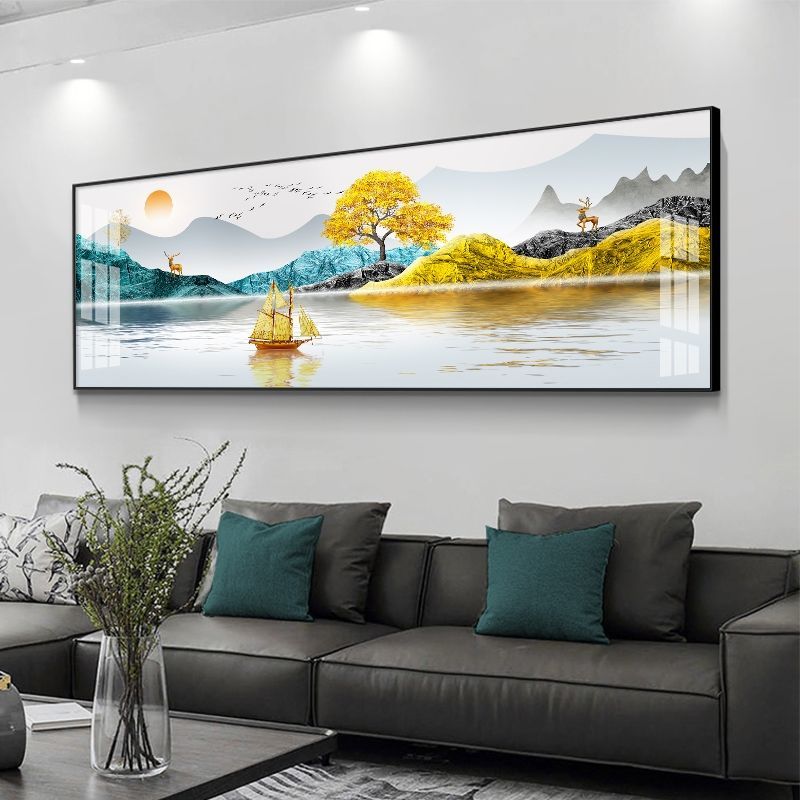 📚 新款沙发背景墙晶瓷面单幅装饰画有框风水招财画床头画客厅挂画