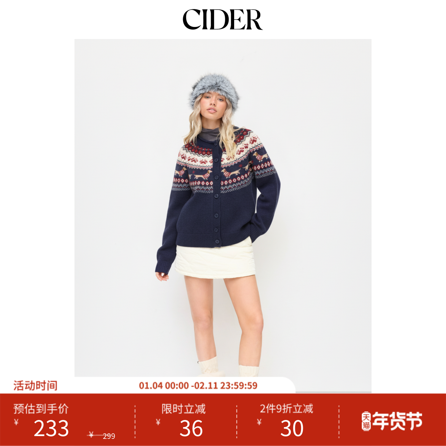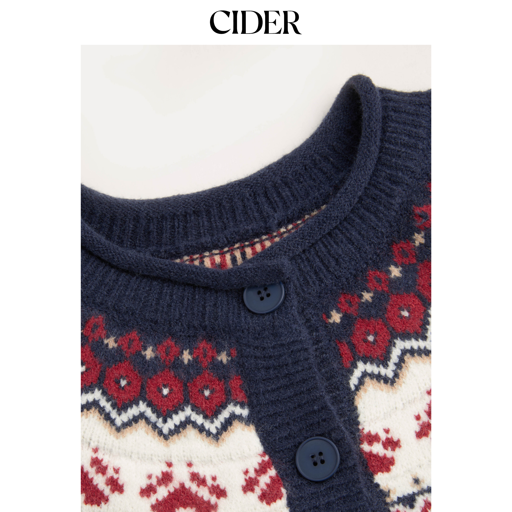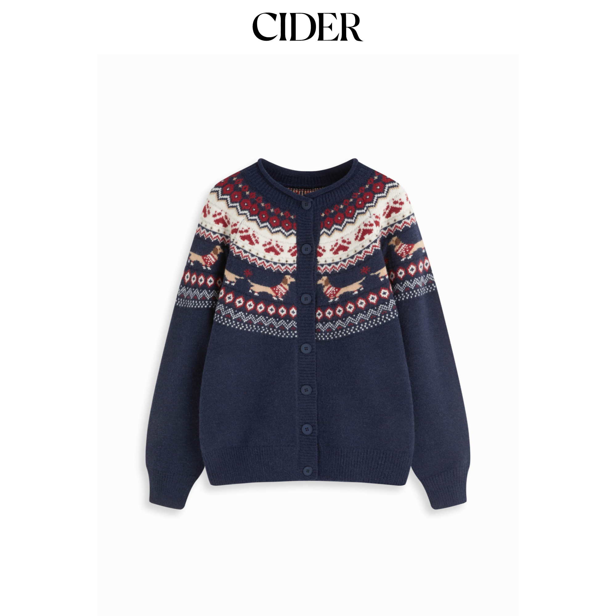 📚 CIDER新品针织复古费尔岛犬印花圆领保暖宽松开衫毛衣115053482